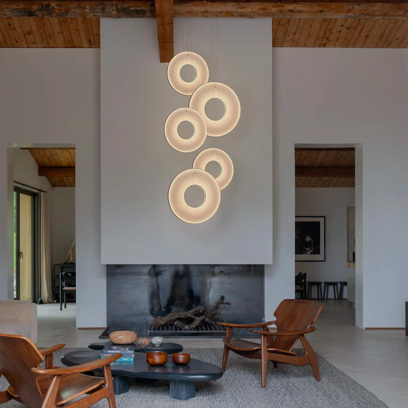 Die vertikale Ausrichtung der Iris Pendant Vertical 80 erzeugt ein faszinierendes Spiel aus Licht und Schatten, das sich über mehrere Ebenen erstreckt. Ihr sanftes, blendfreies Licht illuminiert den Raum auf einzigartige Weise und schafft eine außergewöhnliche Atmosphäre – perfekt für repräsentative Eingangsbereiche, offene Wohnkonzepte oder moderne Bürolandschaften.