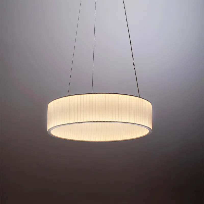Mit einem Durchmesser von 60 cm präsentiert sich die 10 HEURES 10 Ronde Pendant 60 Pendelleuchte als beeindruckende Esstischleuchte, die Eleganz und Funktionalität meisterhaft vereint. Vom renommierten Designer Fabrice BERRUX entworfen, interpretiert diese Hängeleuchte das klassische Thema des Lampenschirms auf eine zeitgenössische und minimalistische Weise. Durch ihre einzigartige Konstruktion besticht die Ronde Pendant 60, indem die unterschiedliche Dicke des Stoffes im Bereich der Falten ein faszinierendes Spiel von Licht und Schatten erzeugt. Lebendig, vibrierend und warm verteilt sich das Licht und erfüllt den Raum mit einer einladenden Atmosphäre.