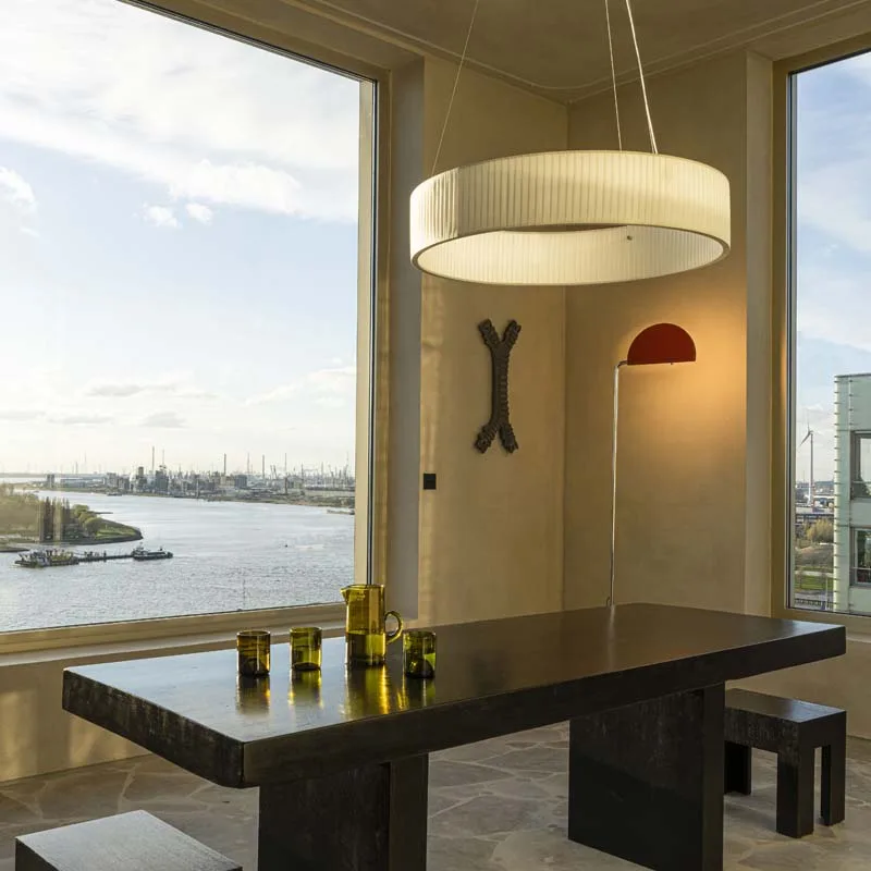 BERRUX’ Vision eines ausgehöhlten Lampenschirms, der an die Leichtigkeit von Rauchringen erinnert, manifestiert sich in der RONDE-Serie. Die schlichte geometrische Form der Leuchte kleidet den Raum auf eine subtile, aber wirkungsvolle Art und Weise. Als Teil der Ronde-Kollektion zelebriert die Pendant 80 die Schönheit der Kreisform und verkörpert zeitlose Eleganz. Ihre markante, runde Struktur strahlt Leichtigkeit und Harmonie aus, wodurch sie zum Blickfang in jedem Raum wird.