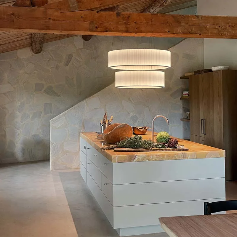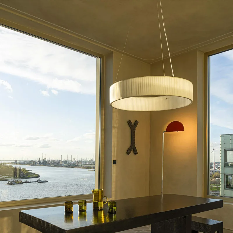 Die 10 HEURES 10 Ronde Pendant 80 Pendelleuchte ist eine beeindruckende Esstischleuchte mit einem Durchmesser von 80 cm, die Eleganz und Funktionalität perfekt vereint. Entworfen vom renommierten Designer Fabrice BERRUX, interpretiert diese Hängeleuchte das klassische Thema des Lampenschirms auf eine zeitgenössische und minimalistische Weise. Die Ronde Pendant 80 besticht durch ihre einzigartige Konstruktion, bei der die unterschiedliche Dicke des Stoffes im Bereich der Falten ein faszinierendes Spiel von Licht und Schatten erzeugt. Das Resultat ist eine lebendige, vibrierende und warme Lichtverteilung, die den Raum mit einer einladenden Atmosphäre erfüllt.