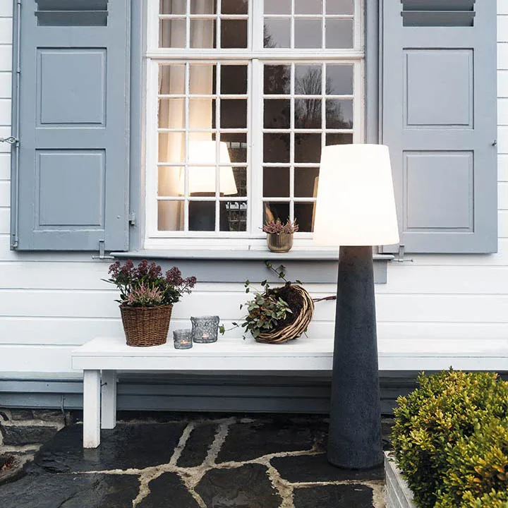 Ausgestattet ist die Stehleuchte mit einem E27-Modul, inklusive eines warmweißen Leuchtmittels, das ein gemütliches und einladendes Lichtambiente schafft. Die diffuse Lichtausstrahlung sorgt für eine angenehme Atmosphäre in Wohnräumen, Schlafzimmern, Gärten, auf Terrassen oder in Innenhöfen.