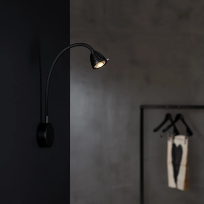 Die Leuchte Cadmo von Artemide wirft ein helles, indirektes Licht an die Decke und Streulicht aus der vertikalen Öffnung. Beide Leuchtmittel sind getrennt schaltbar. Der gebogene Stahlblech-Leuchtenkörper ist in den Ausführungen schwarz, oder weiß lackiert erhältlich. Die Innenseite bleibt immer weiß lackiert.