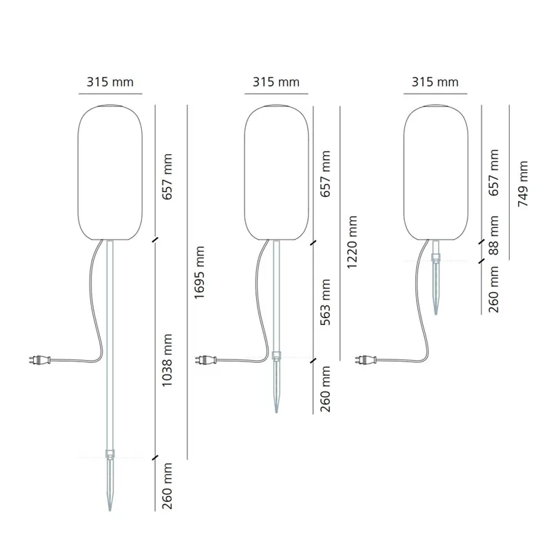 Die elegante Form der Gople-Serie bleibt erhalten, während der leichte, widerstandsfähige Kunststoffdiffusor das Licht rundum weich und angenehm abstrahlt. Die Stehleuchte ist in drei verschiedenen Höhen erhältlich, sodass du mit einzelnen oder mehreren Leuchten spannende Lichtkompositionen im Außenbereich gestalten kannst. Der Erdspieß ermöglicht eine schnelle und einfache Platzierung – jederzeit versetzbar und ideal für saisonale Gartenkonzepte.
