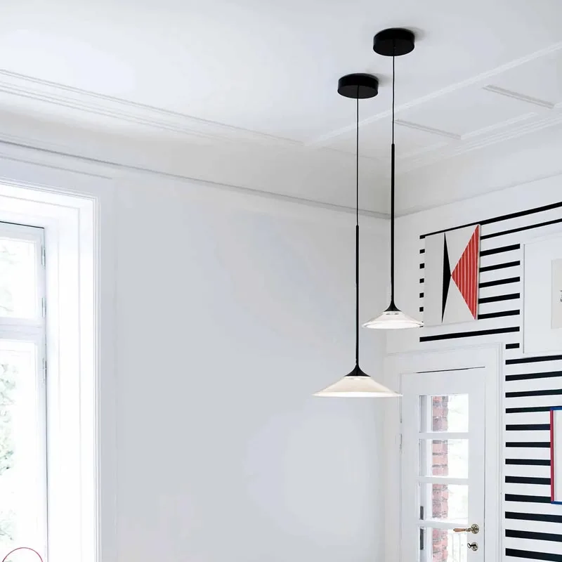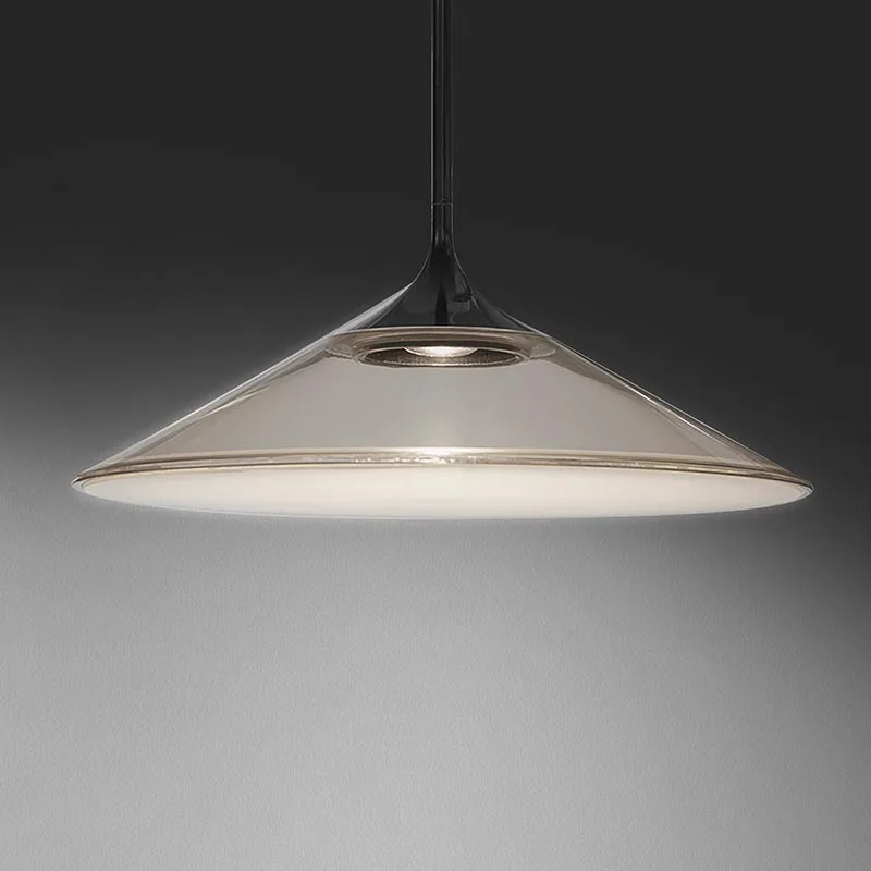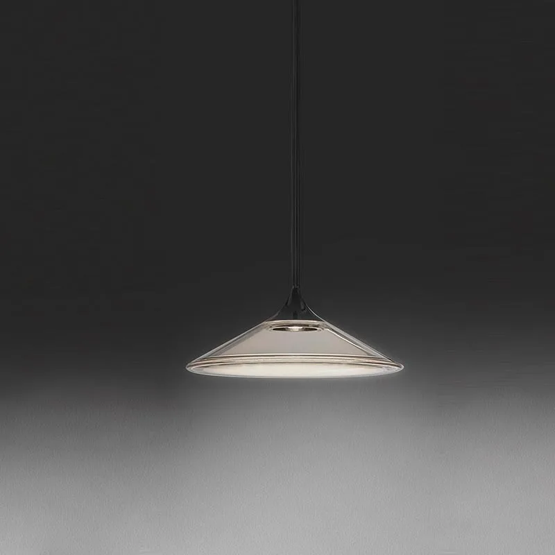 Die Pendelleuchte Artemide Orsa 21 symbolisiert die Quintessenz von Präzision und Minimalismus. Ihre auf das wesentliche reduzierte Formgebung strahlt schlichte Eleganz aus und setzt stimmungsvolle Lichtakzente in jedem Raum. Zentrales Element der Hängeleuchte Leuchte ist der kunstvoll geformte Methacrylat-Schirm. Er verjüngt sich nach oben zu einer feinen Spitze, die das energieeffiziente LED-Leuchtmittel beherbergt. Wenn die Orsa leuchtet, wirkt der Schirm wie eine in der Luft schwebende Lichtscheibe. Das Licht strahlt gleichmäßig durch den Schirm und zaubert damit eine einzigartige Atmosphäre.