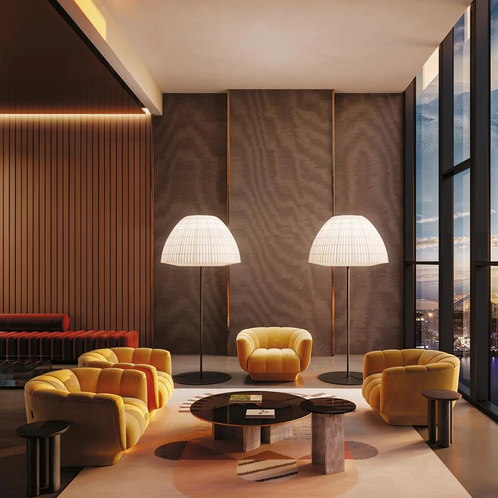 Bell Floor ist nicht nur eine außergewöhnliche Stehleuchte – sie ist ein Gestaltungselement, das Räume mit Wärme, Stil und akustischem Komfort bereichert.
