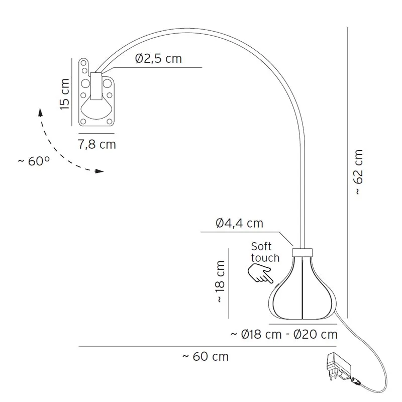 Ein zierlicher Aluminiumarm hält eine Metallplatte, die die Silhouette einer Glühbirne nachbildet und auf der das moderne, energieeffiziente LED-Leuchtmittel montiert ist. Der Leuchtenkopf lässt sich um etwa 60 Grad schwenken, was eine anpassbare Lichtausrichtung ermöglicht. Die Neuauflage verbindet klassisches Design mit fortschrittlicher LED-Technologie und bietet eine Dimmfunktion direkt am Leuchtenfuß. Nutzer können zwischen Lichtfarben von 2700 K oder 3000 K wählen, um die bevorzugte Lichtstimmung zu erzeugen.