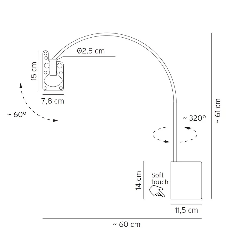 Ein um 320 Grad drehbarer Aluminiumarm hält eine Metallplatte, die die Silhouette einer Glühbirne nachbildet und auf der das moderne, energieeffiziente LED-Leuchtmittel montiert ist. Der Leuchtenkopf lässt sich um etwa 60 Grad schwenken, was eine anpassbare Lichtausrichtung ermöglicht. Die Neuauflage verbindet klassisches Design mit fortschrittlicher LED-Technologie und bietet eine Dimmfunktion direkt am Leuchtenfuß. Nutzer können zwischen Lichtfarben von 2700 K oder 3000 K wählen, um die bevorzugte Lichtstimmung zu erzeugen.