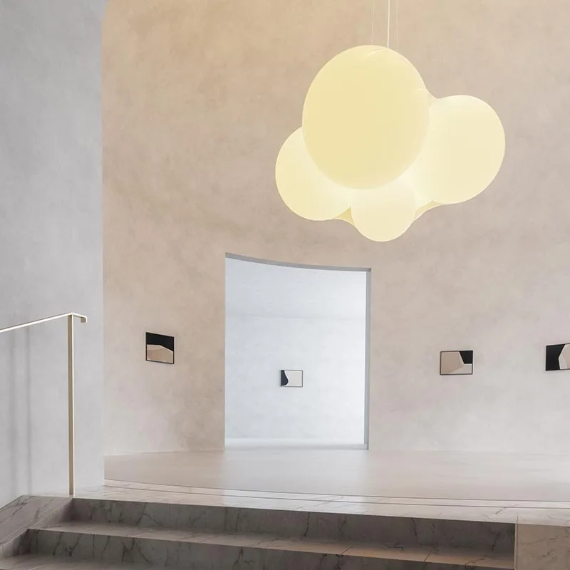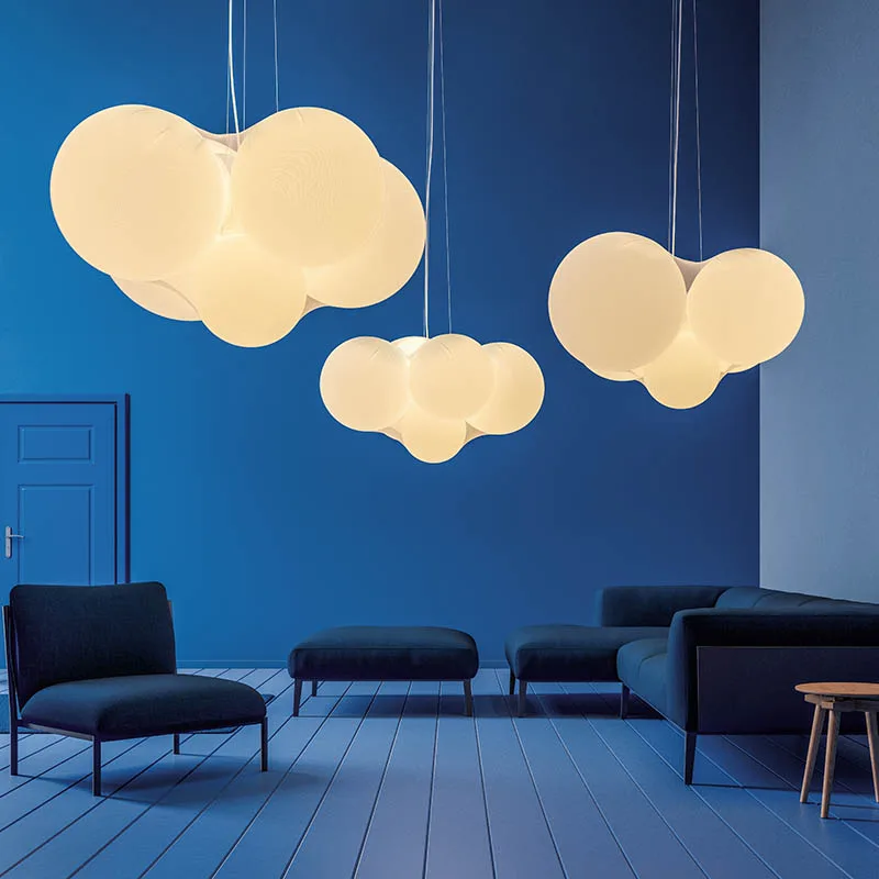 Cloudy ist eine skulpturale Designer Pendelleuchte, die mit beeindruckender Präsenz und einem weichen, gemütlichen Licht den Raum eindrucksvoll in Szene setzt. Das wolkenähnliche Lichtobjekt besteht aus fünf kugelförmigen Elementen in unterschiedlichen Größe, die in einen halbtransparenten elastischen Stoff gehüllt sind. An dünnen Seilen befestigt, scheint die fulminante Leuchte, die vom russischen Designer Dima Loginoff entworfen wurde, förmlich im Raum zu schweben. Ob einzeln oder in Gruppen arrangiert – die imposante Lichtskulptur sorgt für eine atmosphärische Raumbeleuchtung und ist dekoratives Highlight im Wohn- und Objektbereich. Über einen externen Dimmer lässt sich die Lichtintensität der energieeffizienten LEDs an individuelle Lichtbedürfnisse anpassen.