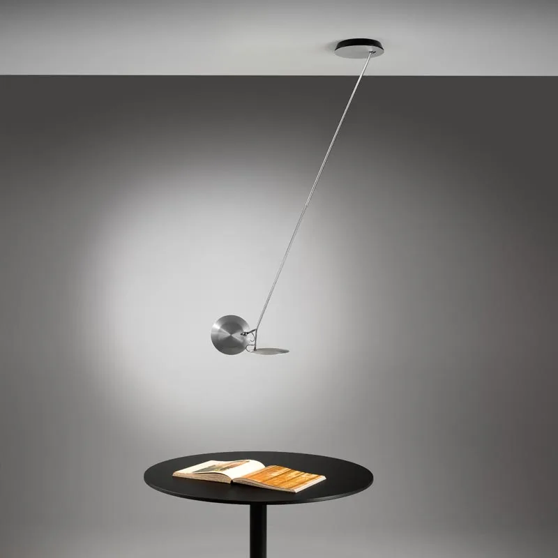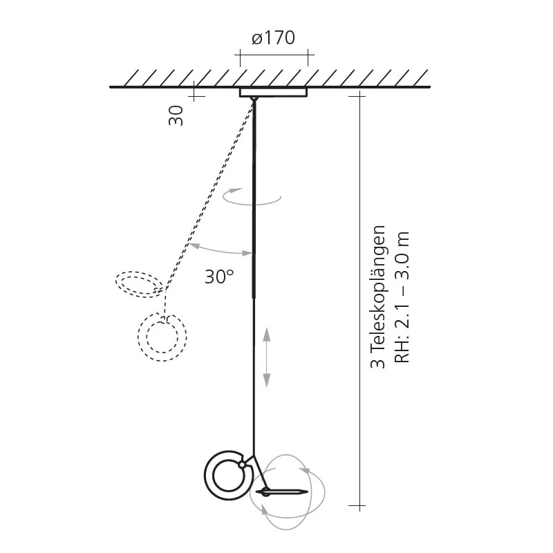 Die zweiflammige Deckenleuchte Oyo D mit Teleskop ermöglicht eine elegante, direkte und indirekte Beleuchtung von Tischen im Wohnzimmer, Esszimmer oder dem Büro. Bestellbar mit verschiedenen Teleskopauszügen lässt sich die Leuchtenhöhe für diverse Raumhöhen bis maximal 3 m genau einstellen. Integrierte Kugelgelenke ermöglichen eine Auslenkung auf alle Seiten bis 30°. Die vielseitige Verstellbarkeit der Leuchtenköpfe sowie das separate Dimmen und Schalten an den Unterseiten der beiden Köpfe ermöglichen die Gestaltung unterschiedlicher Lichtstimmungen im Raum. Die filigrane Stehleuchte besteht aus einem schlanken und drehbarem Aluminiumgestell mit einer raffinierten Technik der Stromführung sowie den zwei kreisrunden Leuchtenköpfen, die mit energieeffizienten Power-LEDs bestückt sind. Das breitstrahlende Licht der Leuchtenköpfe ohne Optik (120°) kann mit den als Zubehör erhältlichen magnetisch haftenden Optiken auf 100°, 60° oder 20° gebündelt werden