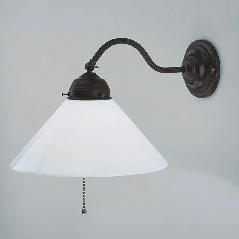 Die Wandleuchte A2-25 op A von Berliner Messinglampen ist die perfekte Wahl, um Ihrem Raum ein Gefühl von Ruhe und Eleganz zu verleihen. Ob in einer gemütlichen Leseecke oder als stilvolle Ergänzung in einem schlichten Flur – diese Leuchte sorgt überall für das richtige Licht. Der großzügige, weiß glänzende Schirm in klassischer Kegelform verteilt das Licht weich und gleichmäßig, ideal, um eine angenehme und einladende Atmosphäre zu schaffen. Das aus dunklem Berliner Messing gefertigte Finish und die filigranen, vom Jugendstil inspirierten Designelemente verleihen der Lampe eine zeitlose Schönheit, während der praktische Zugschalter am Schirm die Bedienung erleichtert. Diese Wandleuchte ist nicht nur eine Lichtquelle, sondern auch ein dekoratives Highlight, das sowohl funktionale Beleuchtung als auch ästhetischen Wert in Ihr Zuhause bringt.