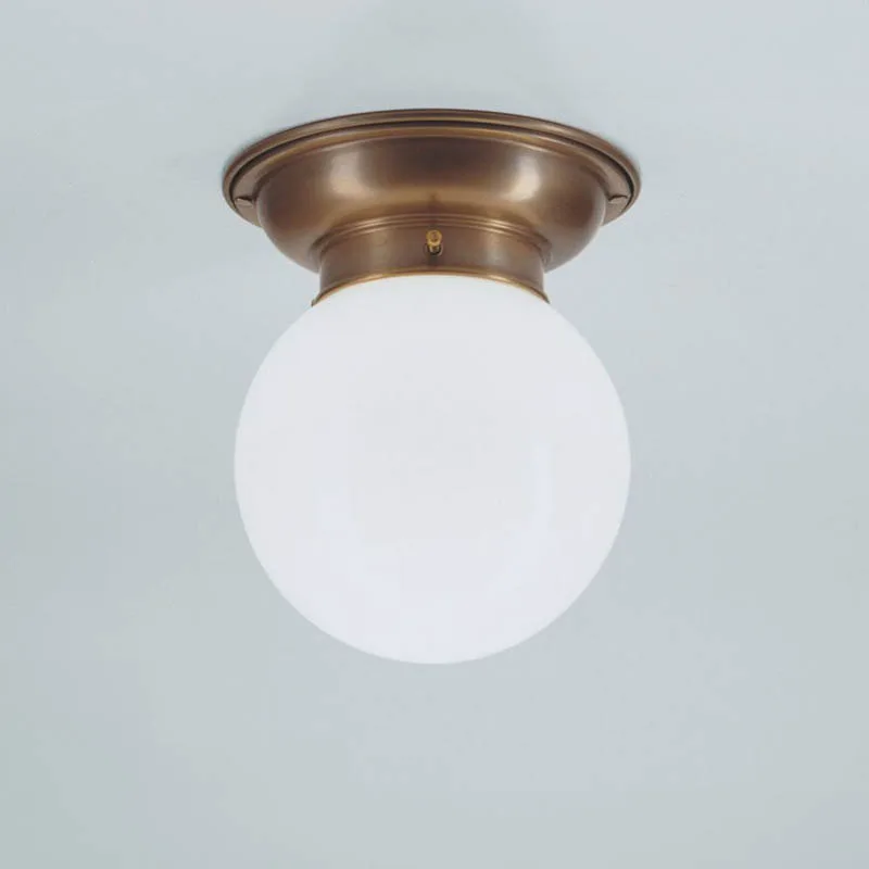 Schaffen Sie ein einladendes Ambiente mit der kompakten Deckenleuchte D60-115 op B von Berliner Messing, die sich ideal für Wohn- und Schlafräume, Flure und Eingangsbereiche eignet. Die Leuchte mit ihrem weiß glänzenden, kugelförmigen Lampenschirm und dem eleganten Berliner Messing-Finish verteilt das Licht sanft und effizient und schafft so eine warme und einladende Atmosphäre.