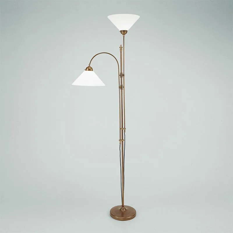 Die Stehleuchte T1T4ST02-70op B von Berliner Messinglampen, ein zeitloser Klassiker, bietet nicht nur ein hervorragendes Leselicht, sondern auch eine angenehme Atmosphäre zur Raumbeleuchtung. Dank der beiden Leuchtenköpfe – einer nach oben gerichtet und der andere ideal positioniert zum Lesen – ist diese Leuchte die perfekte Ergänzung für Ihr Wohn- oder Arbeitszimmer. Der kippbare Glasschirm des Lesearms ermöglicht es Ihnen, das Licht genau dorthin zu lenken, wo Sie es benötigen, während die Höhenverstellbarkeit für zusätzlichen Komfort sorgt.