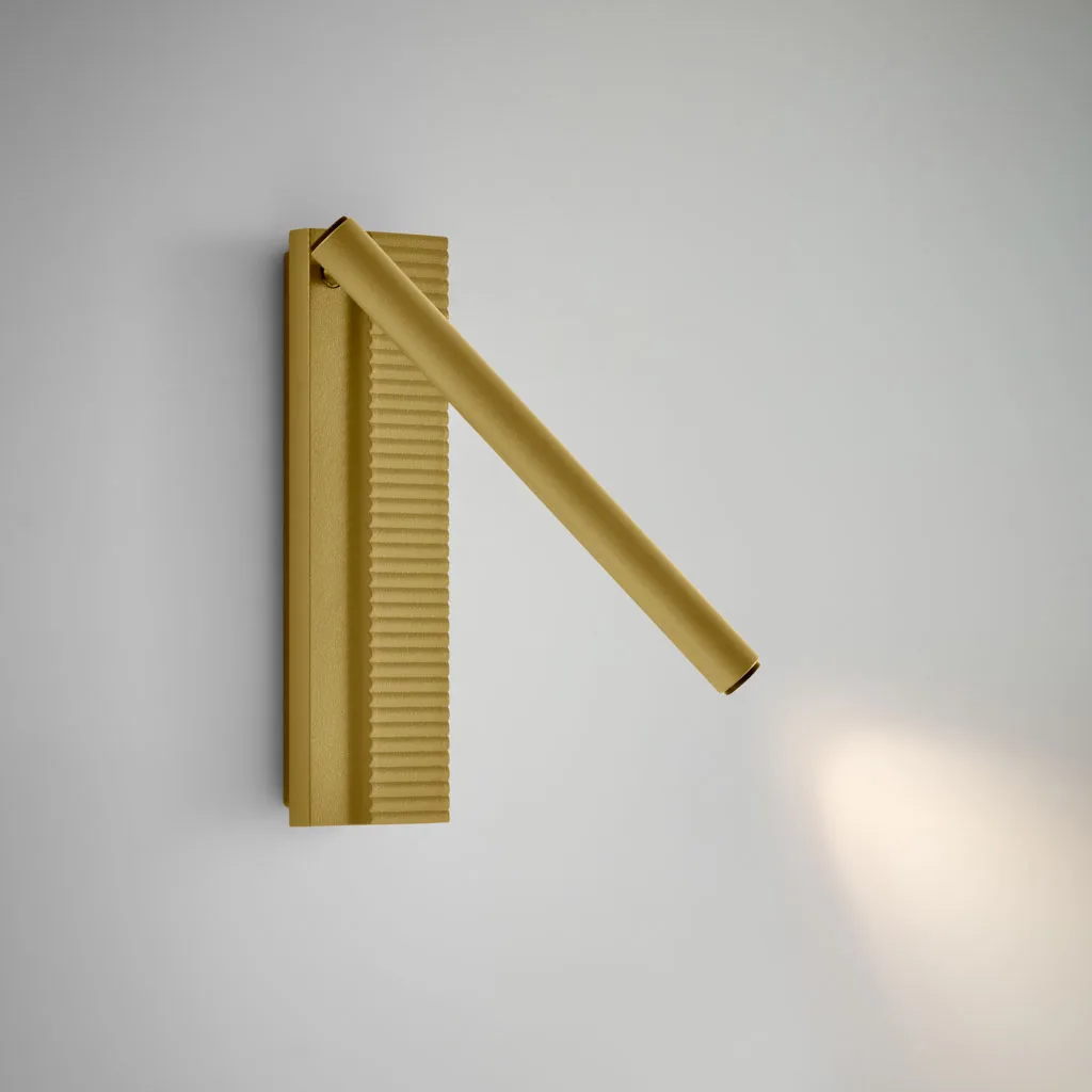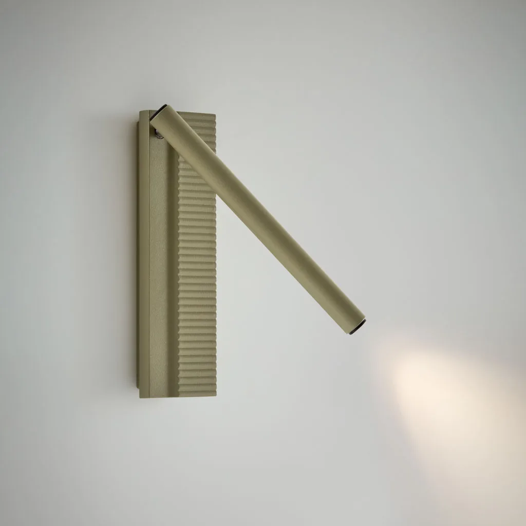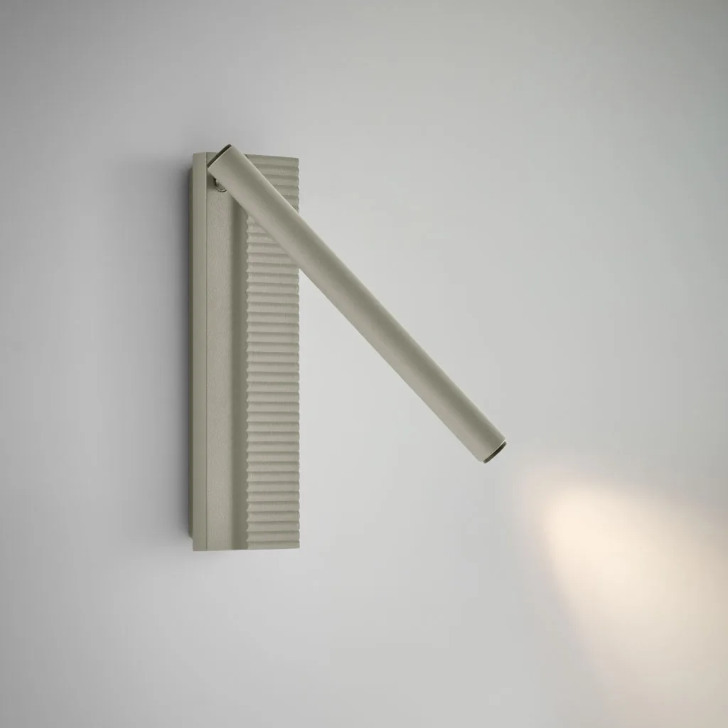 Der Leuchtenarm ist individuell ausrichtbar – ideal für gemütliche Lesemomente oder als dezente Hintergrundbeleuchtung. Die fein gerillte Oberfläche der Wandbasis erinnert an sanft gezeichnete Muster aus der Natur und verleiht jedem Raum eine subtile, künstlerische Note.