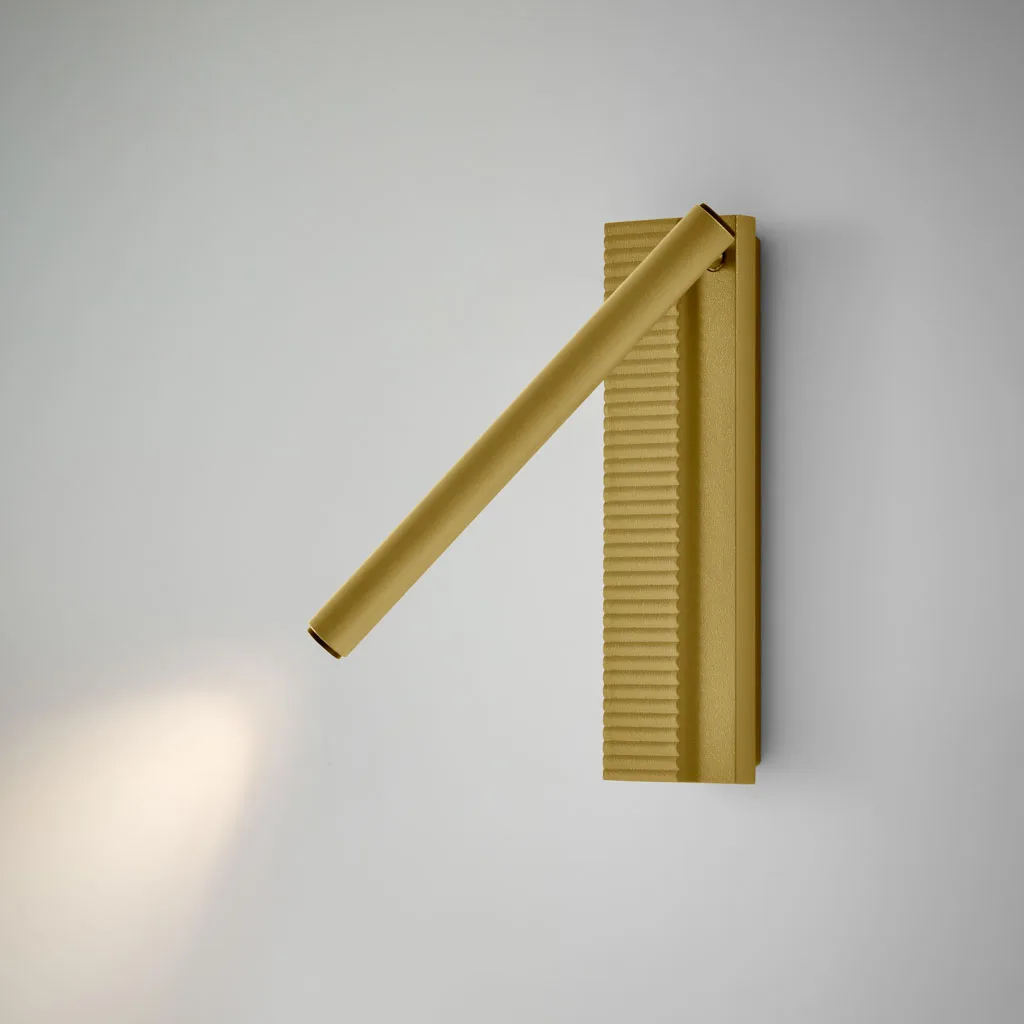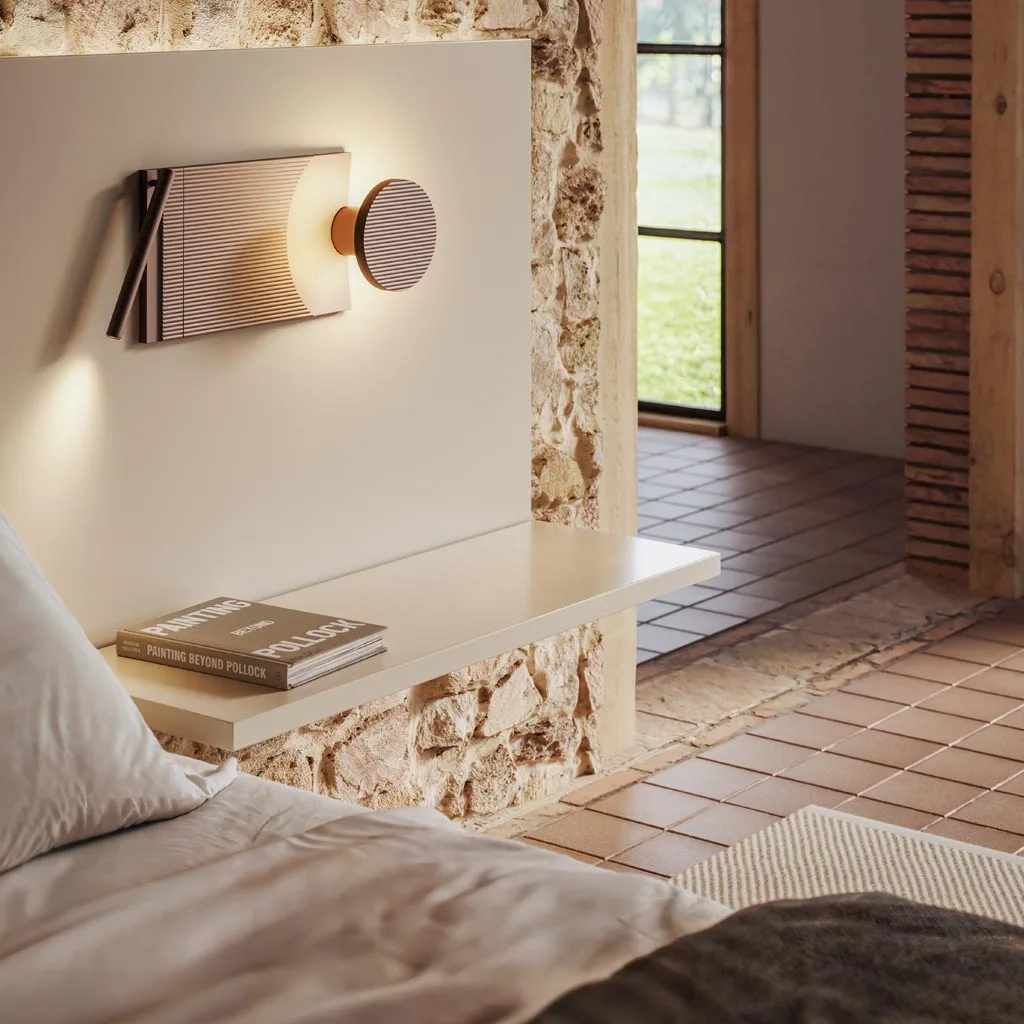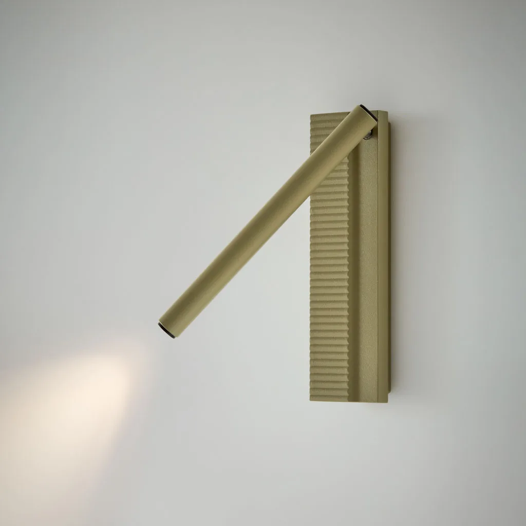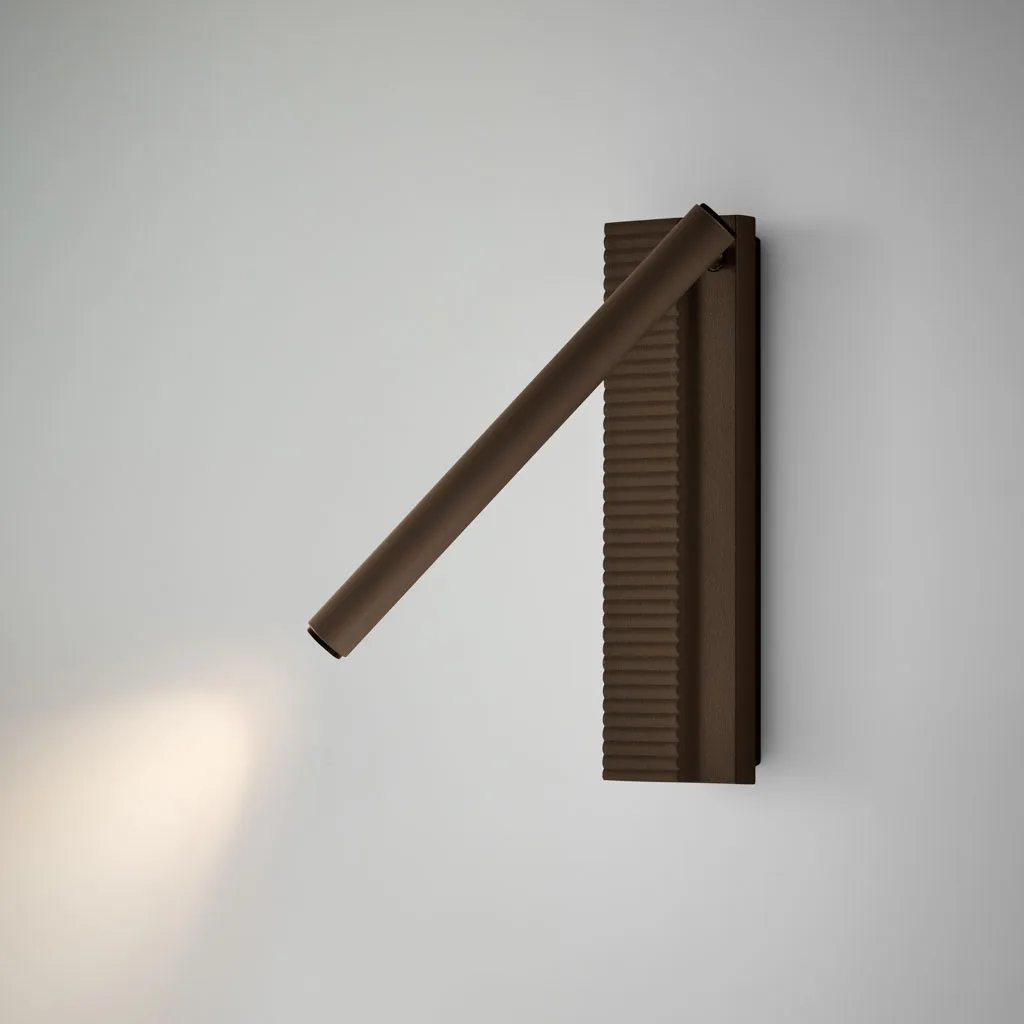 Der Leuchtenarm ist individuell ausrichtbar – ideal für gemütliche Lesemomente oder als dezente Hintergrundbeleuchtung. Die fein gerillte Oberfläche der Wandbasis erinnert an sanft gezeichnete Muster aus der Natur und verleiht jedem Raum eine subtile, künstlerische Note.