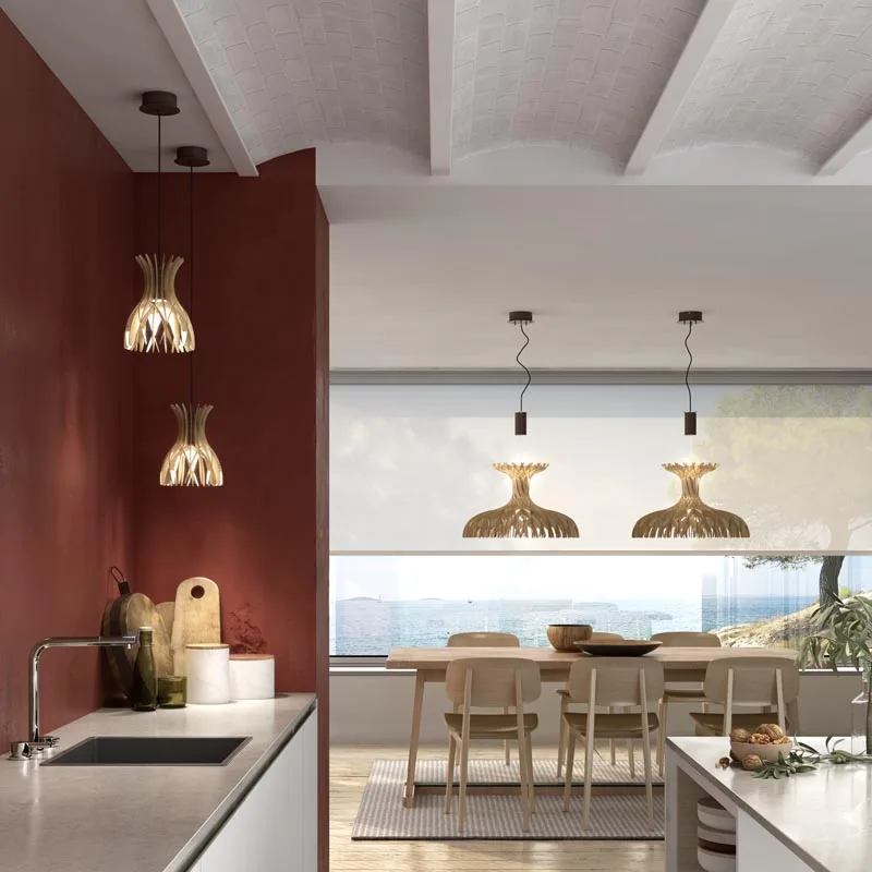 Verwandeln Sie Ihr Zuhause mit der Pendelleuchte Domita S/20 in eine Wohlfühloase. Das Meisterwerk aus naturbelassenem Buchenholz verzaubert mit seinem warmen Licht und einzigartigen Schattenspielen, die jedem Raum eine besondere Note verleihen.