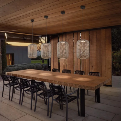 Die LEDPendelleuchte Nans Spehre S/80 Outdoor der spanischen Lichtmarke Bover verleiht Orten wie Terrassen, Balkonen, Restaurants oder Bars ein unverwechselbares Flair. Diese witterungsbeständige Leuchte mit der Schutzart IP54 eignet sich daher hervorragend für den Einsatz über Theken, in offenen Außenbereichen oder auf Balkonen. Ausgestattet mit einer energieeffizienten LED, strahlt sie das Licht sanft nach unten durch einen UV-beständigen Polyethylendiffusor. Die offene Struktur des Leuchtenschirms schafft eine harmonische Lichtatmosphäre. Mit individuellen Farbvarianten in Rot, Beige und Braun bietet sie vielfältige Gestaltungsmöglichkeiten für den Außenbereich.