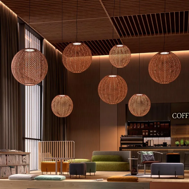 Mit der umfangreichen Leuchtenkollektion Nans wollte die Designerin die Handwerkskunst der Lampenschirme hervorheben und nach einer anderen Art des Webens suchen, indem sie verschiedene Farben und Formate kombinierte, um einen echten mediterranen Stil zu kreieren.