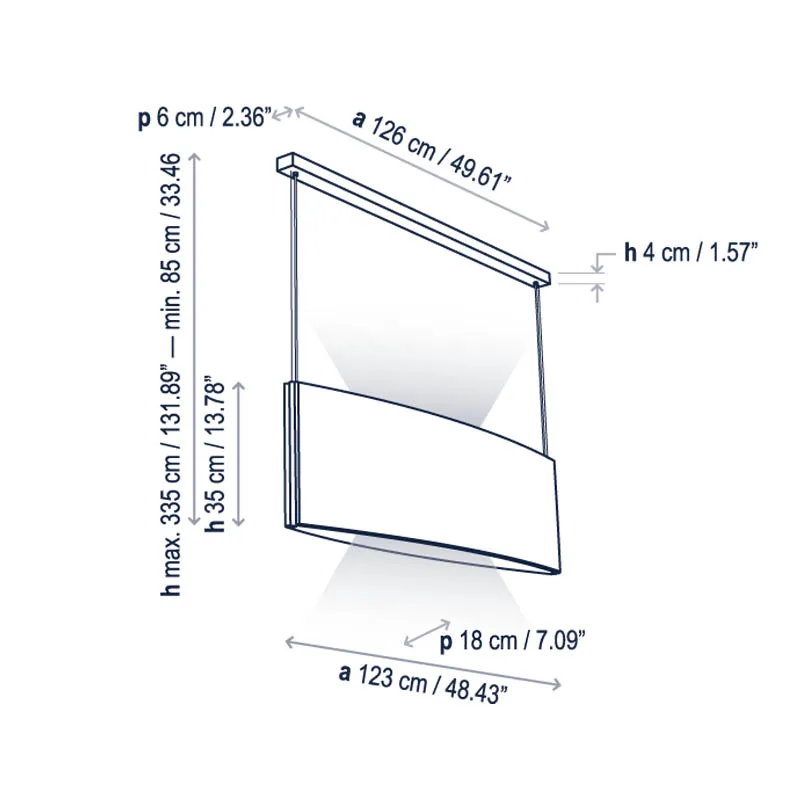 Die LED-Pendelleuchte Noren S/123 ist in zwei Varianten erhältlich: als Downlight-Version mit Lichtaustritt nach unten oder als Uplight & Downlight-Version mit Lichtaustritten nach oben und unten. Ein besonderes Merkmal sind die integrierten schallabsorbierenden Paneelen, die für eine verbesserte Raumakustik sorgen. Bover gibt den Schallabsorptionsgrad mit Klasse A an, welcher nach DIN EN 11654 als “höchst absorbierend” zertifiziert ist.
