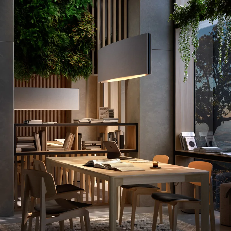 Dank ihrer schallabsorbierenden Eigenschaften eignet sich die Pendelleuchte perfekt für Büros, Konferenzräume, Restaurants, Cafes und offene Wohnbereiche. Sie ist nicht nur ein optisches Highlight, sondern bietet auch einen funktionalen Mehrwert. Erleben Sie ein Design, das den Raum nicht nur optisch, sondern auch akustisch bereichert.