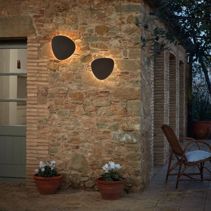 Die Außenwandleuchte Tria 05 des spanischen Hersteller Bover ist eine elegante und funktionale Lichtquelle für den Außenbereich. Mit ihrem warmweißen und indirekten Licht erzeugt sie zauberhafte Licht- und Schattenspiele und schafft eine angenehme Atmosphäre auf Terrassen, an Fassaden oder im Garten. Die organische Form der Leuchte erinnert an abgenutzte Flusssteine und fügt sich harmonisch in naturnahe Umgebungen ein.