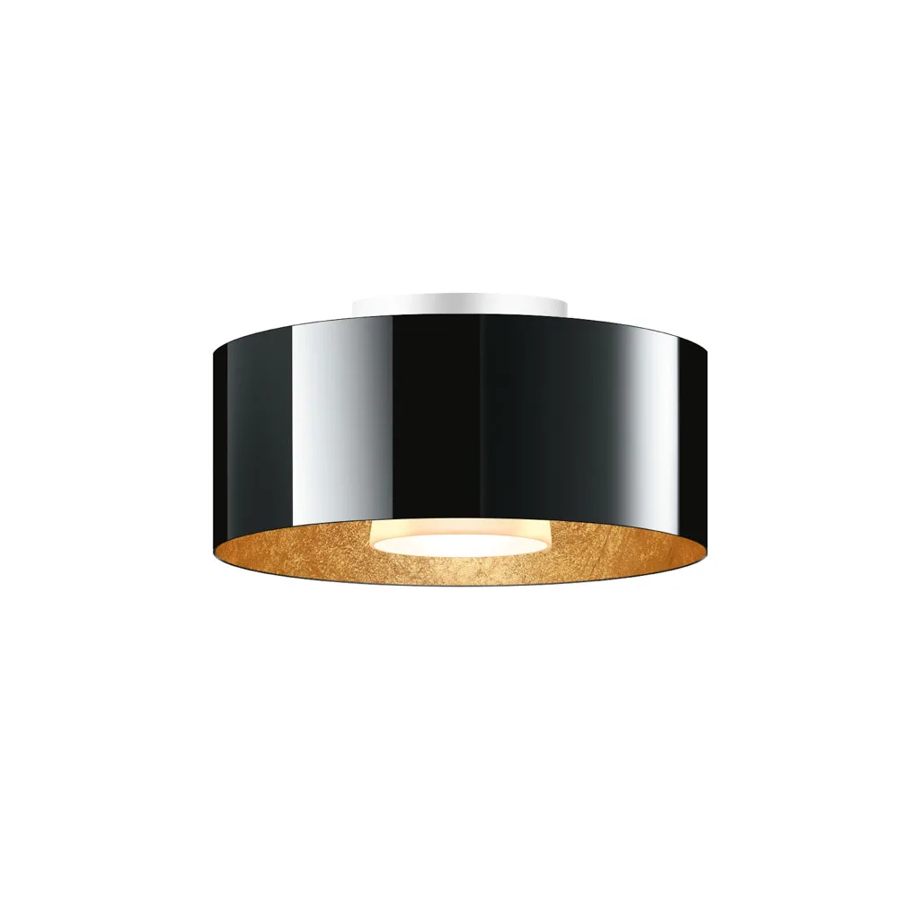 Mit ihrem großzügigen, zylindrischen Glasschirm und dem charakteristischen Metallkorpus setzt die Cantara Glas 300 LV C markante Akzente an der Decke. Der goldene Innenschirm sorgt für besonders warmes, stimmungsvolles Licht, das große Flächen angenehm und atmosphärisch ausleuchtet. Die Leuchte ist in den eleganten Varianten Schwarz/Gold und Weiß/Gold erhältlich und bringt moderne Eleganz in Wohnräume, Flure oder exklusive Objektbereiche.