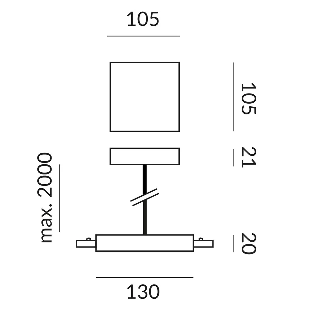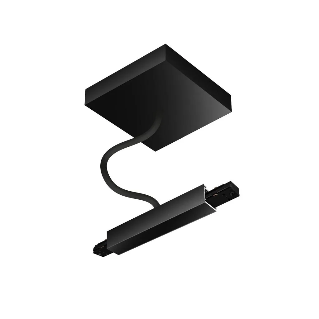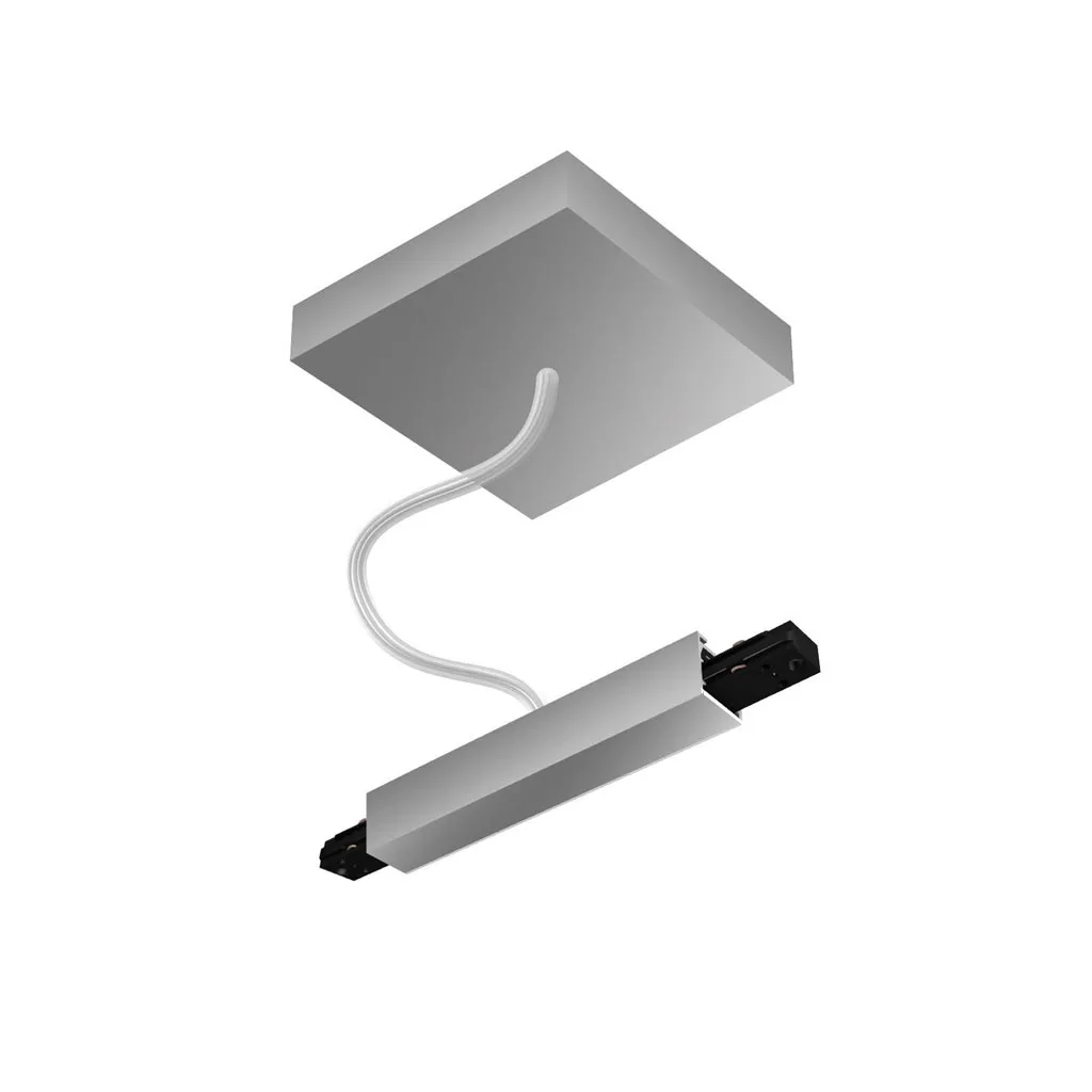 Einspeisung von oben für abgehängte Schienen. Version RC mit integriertem Kompensationsmodul: Gegen Flackern in Verbindung mit Dimmern und gegen unerwünschtes Glimmen nach dem Abschalten.