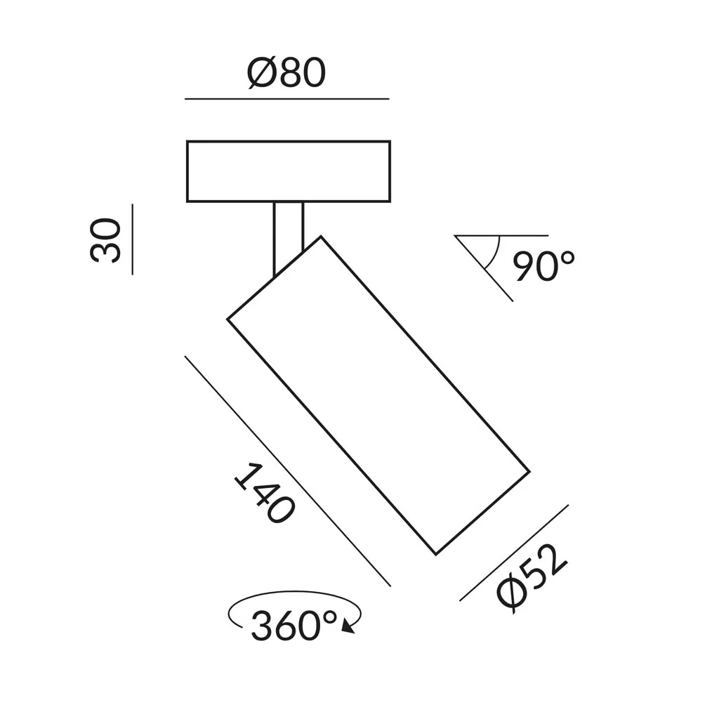 - Zylindrischer Aluminiumreflektor, dreh- und neigbar (360°/90°)