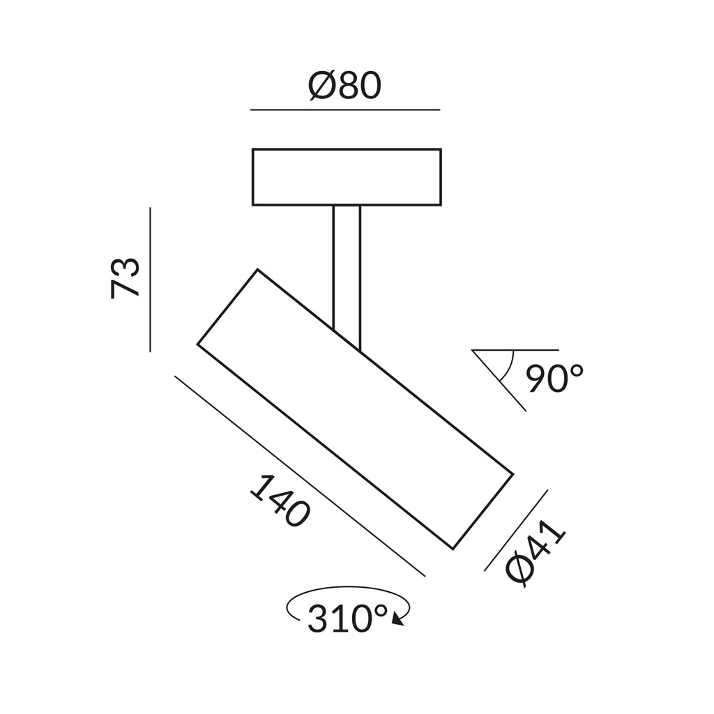 - Schmaler, zylindrischer Spot aus lackiertem Aluminium