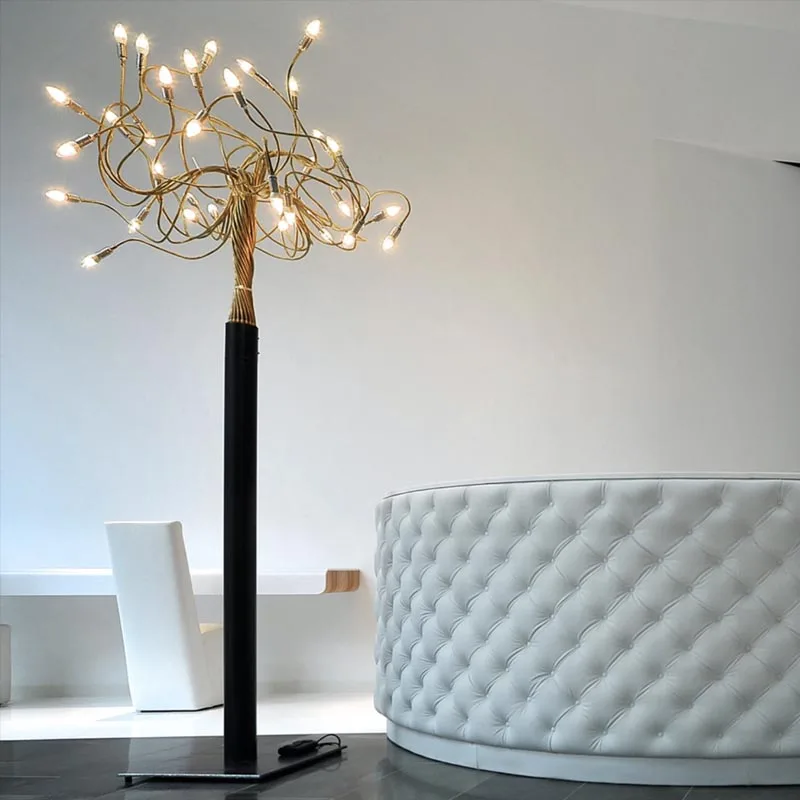 Albero della Luce ist schon aufgrund Ihrer Höhe von bis fast 3 Metern eine imposante Stehleuchte, die in großzügigen Wohn und Objektumgebungen für eine beeindruckende Präsenz sorgt. Die skulpturale Stehleuchte Albero della Luce besteht aus 36 ineinander verdrehten Flexarmen, die mit modernen E14 LED-Leuchtmitteln bestückt sind. Diese dynamische Konstruktion lädt dazu ein, mit der Leuchte zu interagieren und individuelle Formen und Lichteffekte zu erschaffen. Durch die direkte, ausrichtbare Lichtausstrahlung ist die Leuchte ebenso praktisch wie ästhetisch ansprechend, perfekt, um Ihren Wohnraum zu beleuchten und gleichzeitig ein einzigartiges Ambiente zu erzeugen.