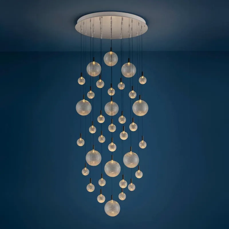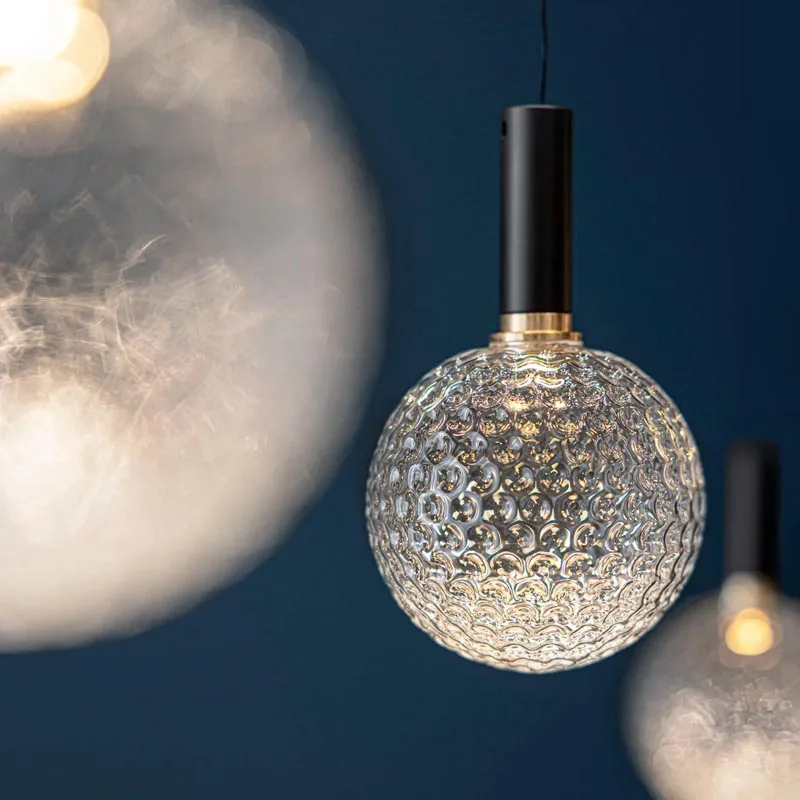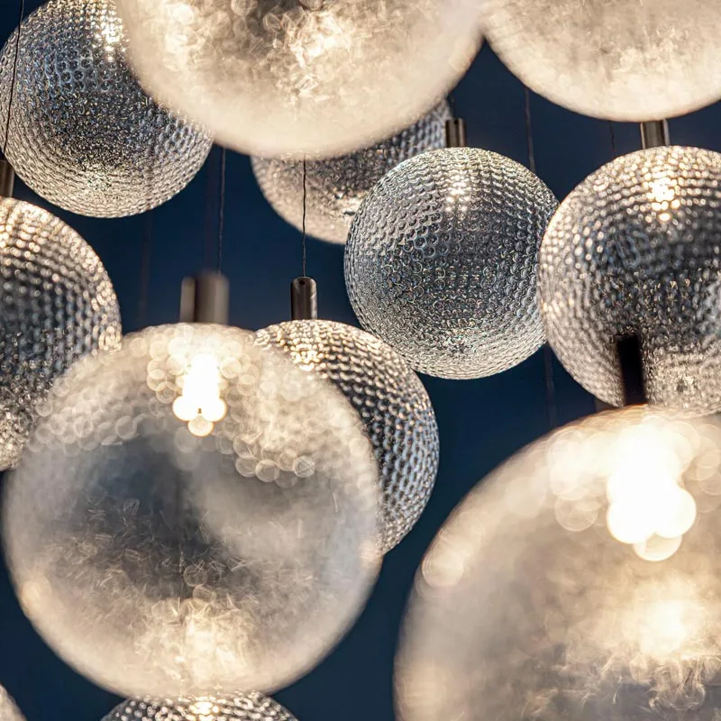 Der Catellani & Smith Par 18 Chandelier vereint kunstvolles Design mit beeindruckender Lichtwirkung. Jede einzelne Glaskugel, handgefertigt von erfahrenen böhmischen Meisterglasmachern, verleiht diesem Kronleuchter eine einzigartige Textur, die subtil an die Oberfläche eines Golfballs erinnert. Durch die unregelmäßige Form des mundgeblasenen Glases entsteht eine faszinierende Interaktion mit dem Licht, wodurch eine einladende Atmosphäre geschaffen wird.