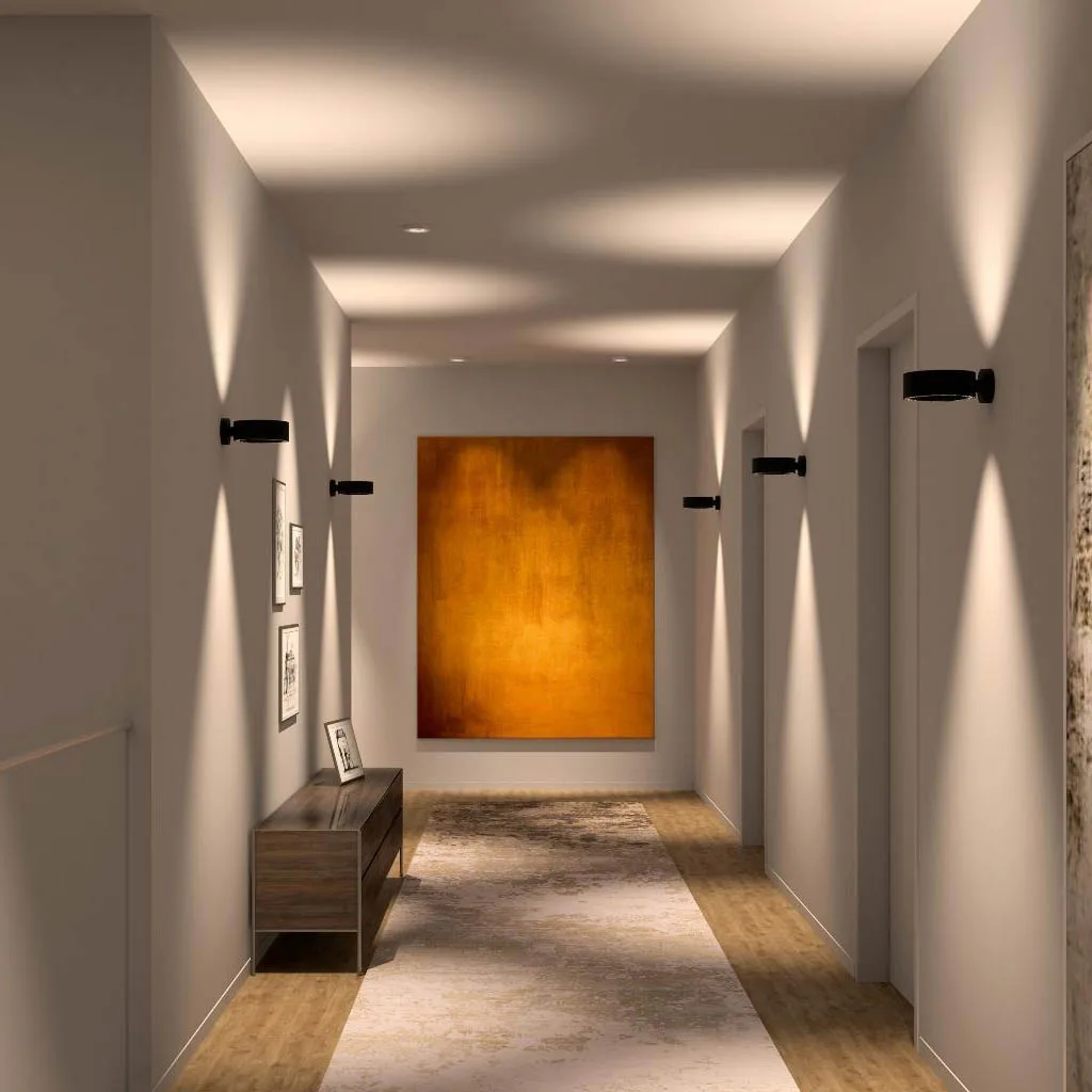 Mit brillantem Up- und Downlight setzt die um 360 Grad drehbare Wandleuchte c.Pace wall Wände immer wieder eindrucksvoll in Szene. Die Wandleuchte aus der wegweisenden c.Pace Design-Linie, die als erstes zirkulares, multifunktionales und linsenbasiertes Strahlersystem konzipiert wurde, eignet sich gleichwohl für den Einsatz in Wohnbereichen und gewerblichen Umgebungen.