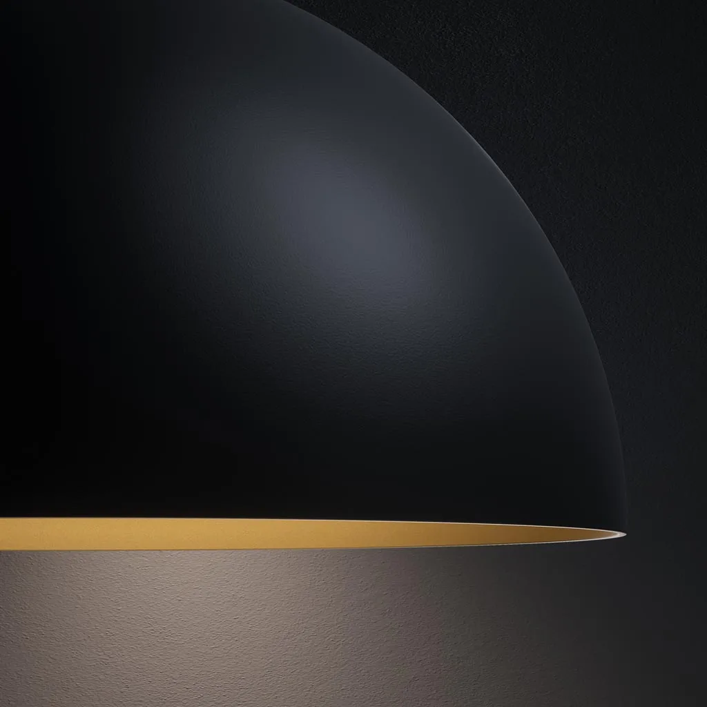 Der kuppelförmige Schirm aus hochwertigem Aluminium kann um 30° geneigt werden, um die Lichtausrichtung nach Bedarf anzupassen. Ein integrierter Diffusor aus Kunststoff sorgt für ein blendfreies, weiches Licht, das ideal für die stimmungsvolle Beleuchtung größerer Räume ist.