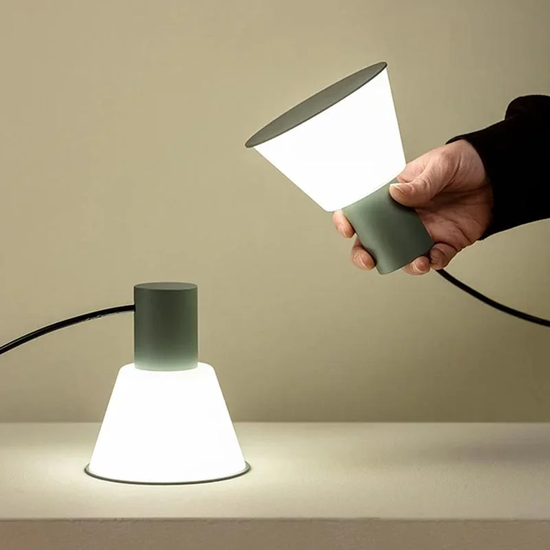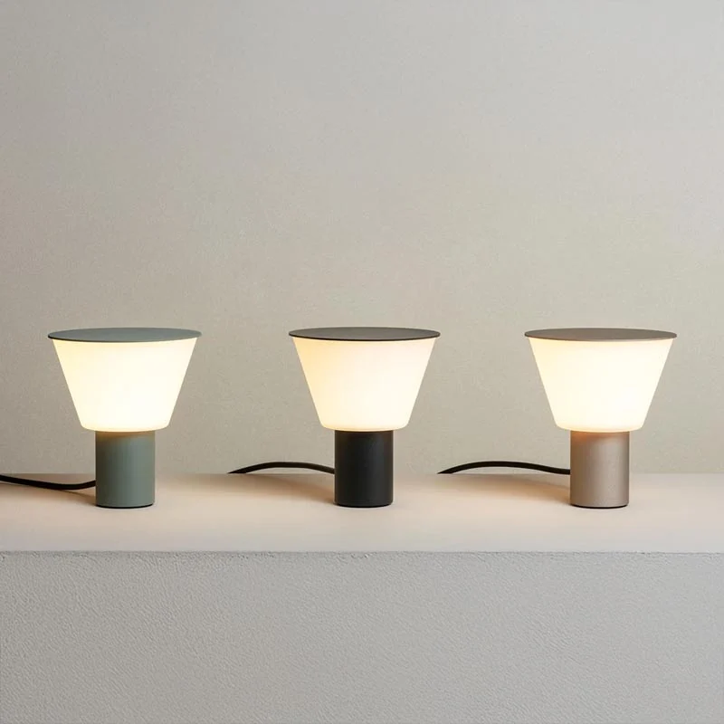Ein besonderes Merkmal der Belt Tischleuchte ist ihre flexible Positionierbarkeit: Sie kann sowohl klassisch aufrecht als auch leicht geneigt platziert werden und passt sich so spielerisch unterschiedlichen Situationen und Stilrichtungen an. Der Dimmer direkt am Kabel ermöglicht eine einfache und stufenlose Anpassung der Lichtintensität – von funktionalem Licht bis hin zu einer sanften, stimmungsvollen Beleuchtung.