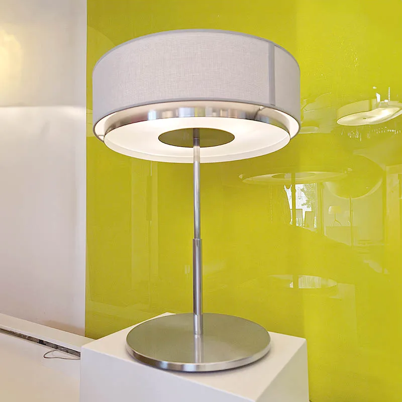 Estiluz Iris M-2717 ist eine elegante Tischleuchte, die direktes und indirektes Licht abgibt. Die Designleuchte des spanischen Herstellers Estiluz ist in der Ausführung Mattnickel in der gelungenen Kombination mit einem weißen Fieberglasschirm erhältlich. Weiße Abdeckgläser sorgen für ein angenehmes und warmes Licht, ein Lichtregler ist vorhanden.