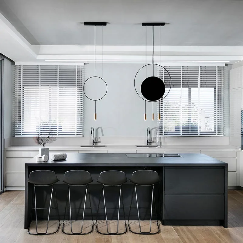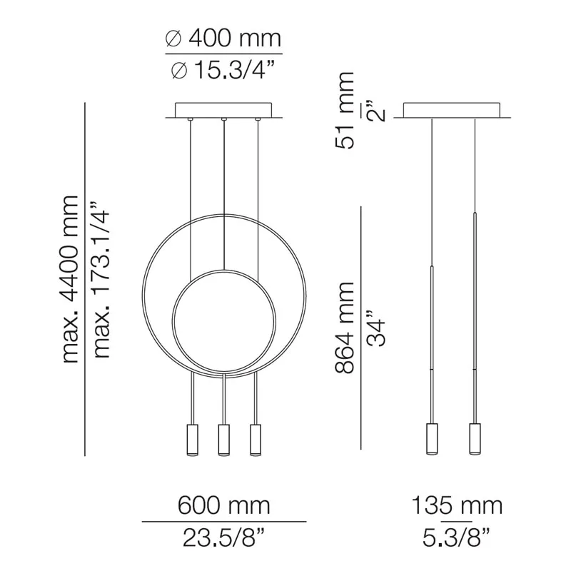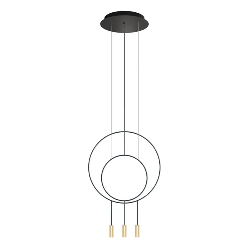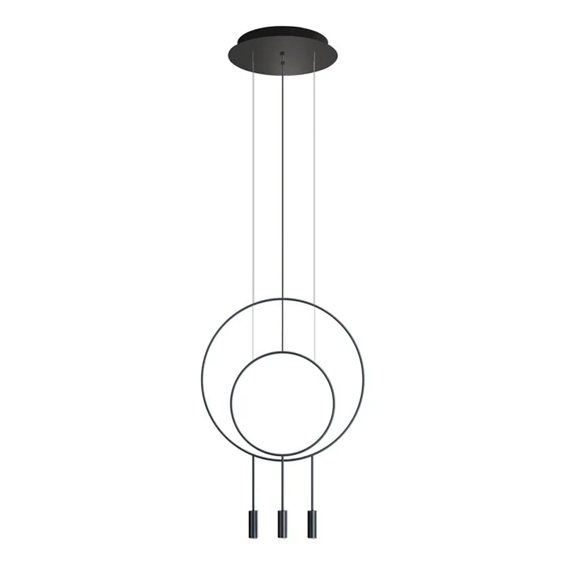 Die 3-flammige Pendelleuchte Revolta L40S1S1D von Estiluz kombiniert einen großen Metallring mit zwei Leuchtenköpfen und einem kleineren Ring mit einem Leuchtenkopf. Der runde Deckenbaldachin ist schwarz. Die schlanke Leuchte punktet mit einer schlanken, runden Formsprache und brillantem, nach unten gerichteten Licht. Ob zur hochwertigen Beleuchtung von Esstischen, Kochinseln, Theken – Revolta integriert sich mit ihrem eleganten Design und den charakteristischen Leuchtenköpfen aus Aluminium exzellent in unterschiedlichste Einrichtungsstile. Mit einer Vielzahl verfügbarer Modelle können einzigartige Leuchtengruppen erstellt werden, die einen Raum stimmungsvoll ausleuchten.