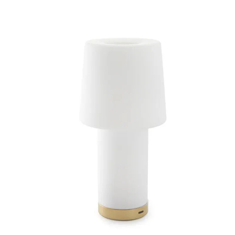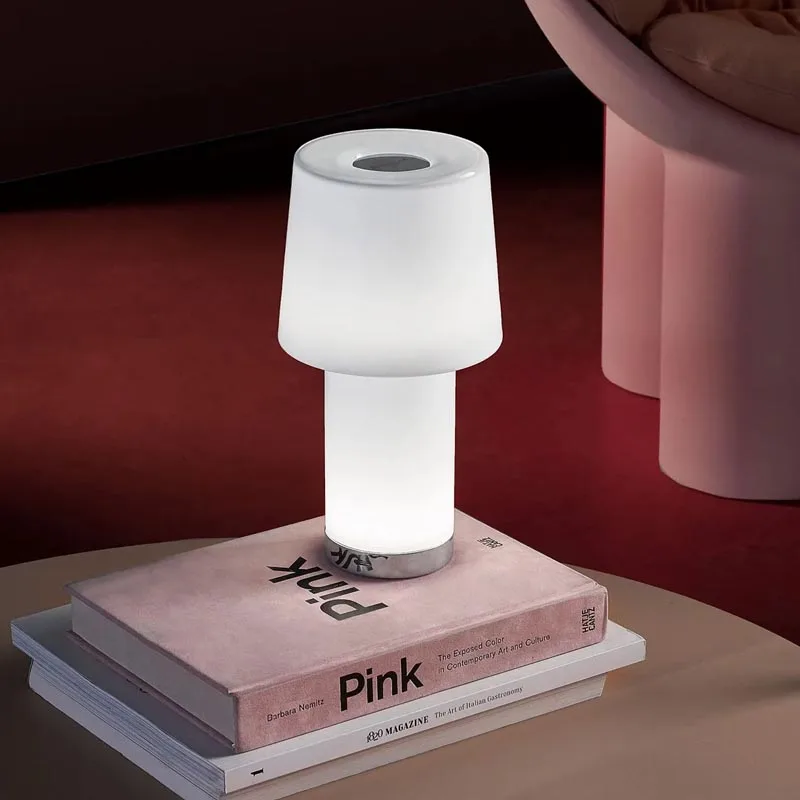 Die integrierte LED-Lichtquelle ist dimmbar und ermöglicht eine flexible Anpassung der Lichtintensität durch einen einfach zu bedienenden, transparenten Touch-Knopf. Dies macht die CAMEO zu einer idealen Lichtquelle für jede Gelegenheit – sei es als sanftes Leselicht oder als stimmungsvolle Beleuchtung während eines Abendessens im Freien.