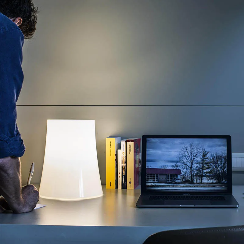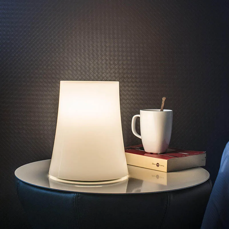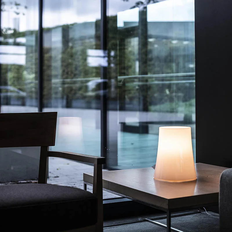 Die Tischleuchte Foscarini Birdie Zero ist Teil der erfolgreichen Birdie Kollektion des italienischen Herstellers Foscarini. Was die Leuchte von der charakteristischen Formgebung ihrer Familienmitglieder unterscheidet, ist ihr aufs wesentliche reduzierte Design, das ganz ohne den typischen Leuchtenstab auskommt und einzig aus einem konischen Leuchtenschirm und einem Metallfuß besteht, der nicht sichtbar im Diffusor untergebracht ist. Der mattweiße Schirm verteilt das Licht homogen und diffus im Raum und sorgt so für eine angenehme Atmosphäre in Wohn- oder Schlafräumen. Die minimalistische Leuchte wurde von den Designern Ludovica & Roberto Palomba entworfen und eignet sich bestens als stimmungsvolles Akzentlicht auf Nachtischen, Sideboards oder dem Couchtisch. Ausgestattet mit einer E27 Fassung, lässt sich die Leuchte mit modernen und energieeffizienten LED-Lampen bestücken. Der Ein-/Ausschalter befindet sich am Leuchtenkabel.