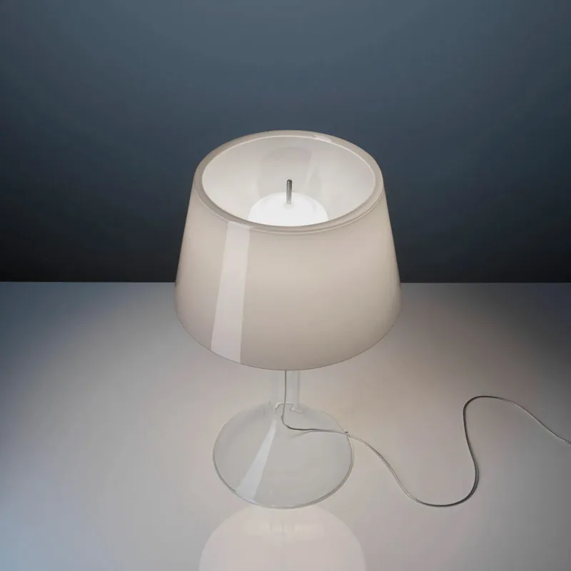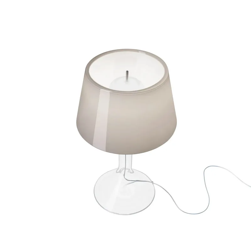 Elegante Designertischleuchte aus Borosilikatglas mit Lampenschirm aus geblasenem Glas. Tastdimmer mit Memory-Funktion. Erhältlich in zwei eleganten Farbvarianten.