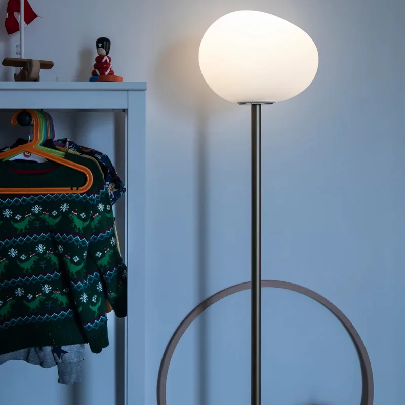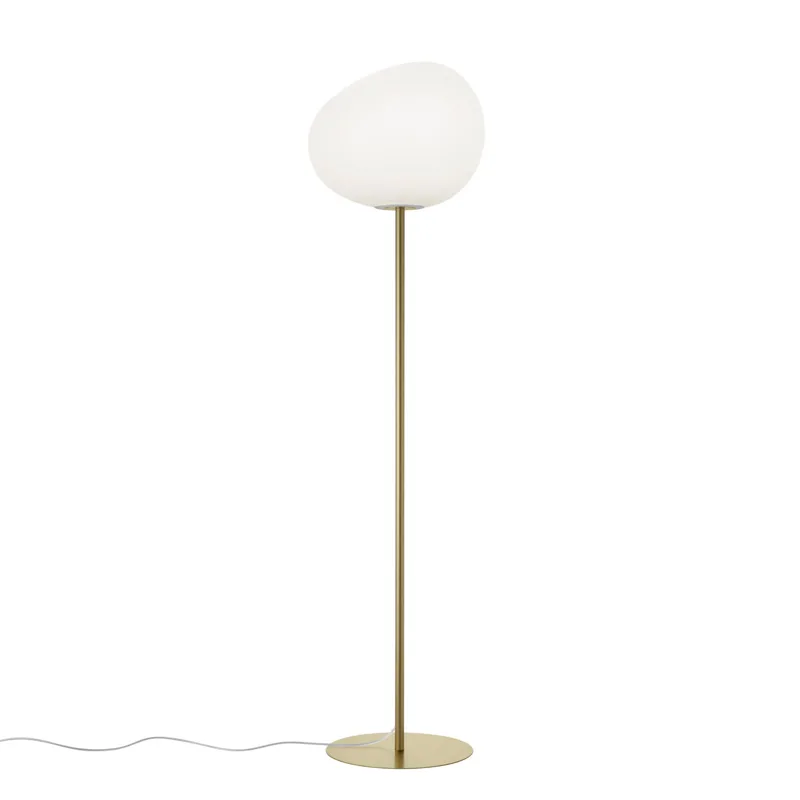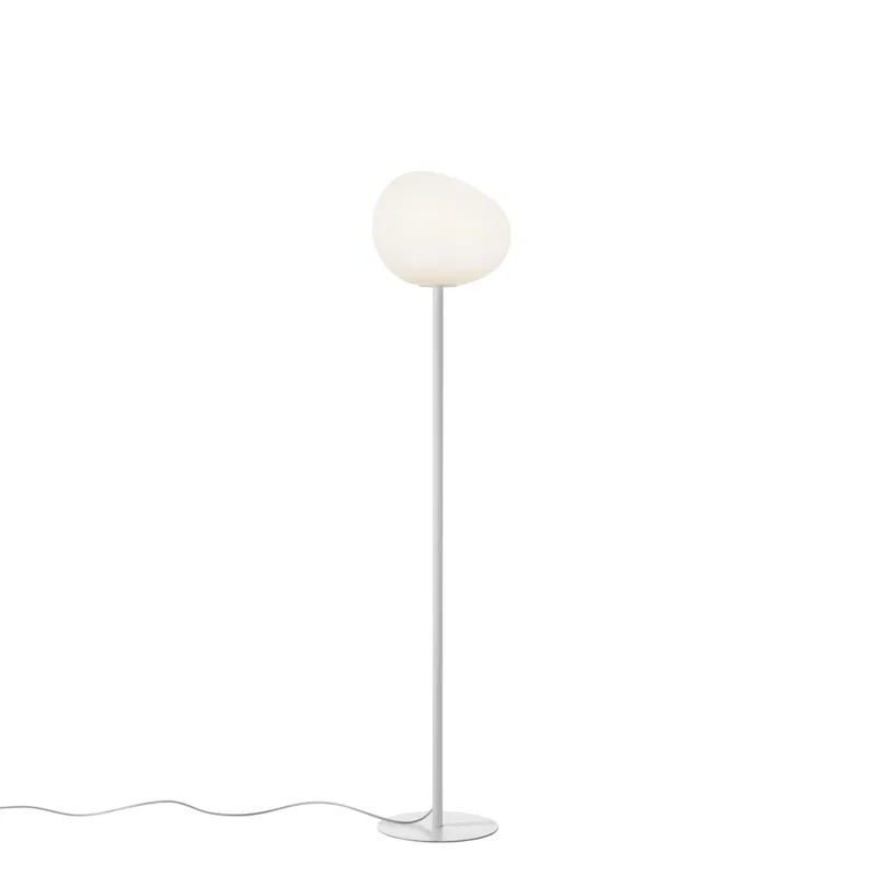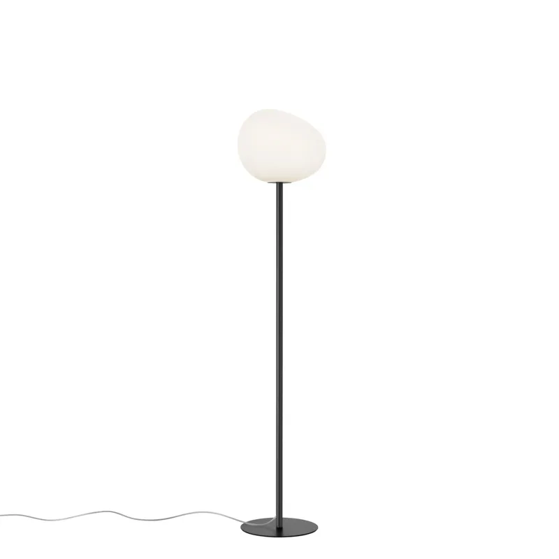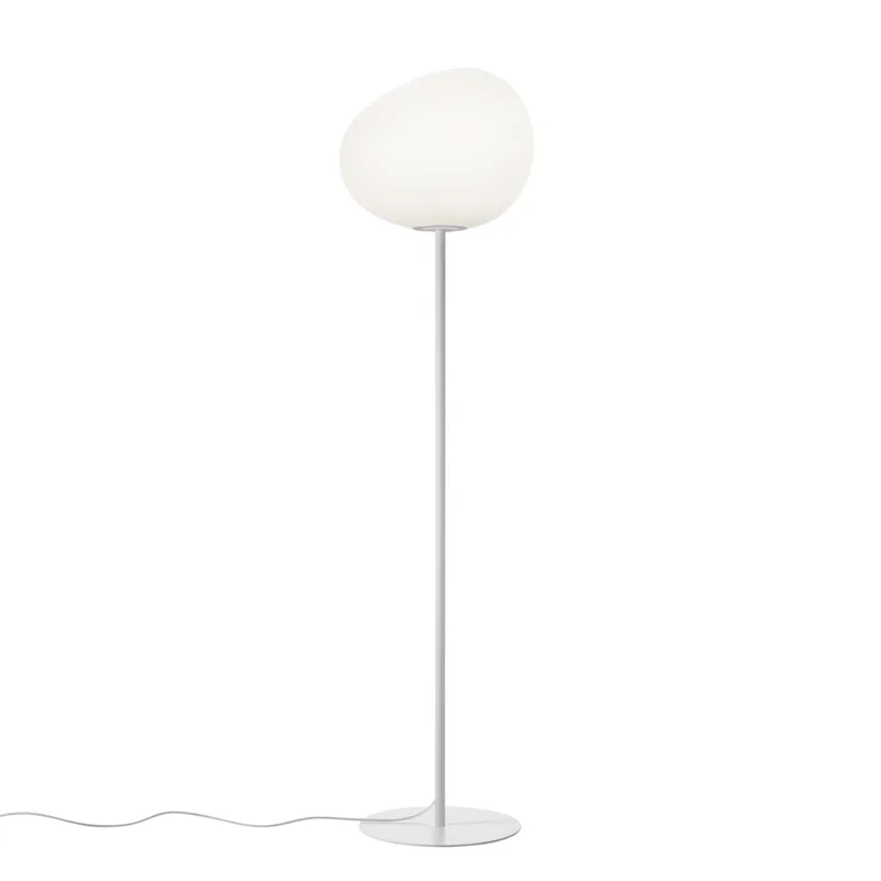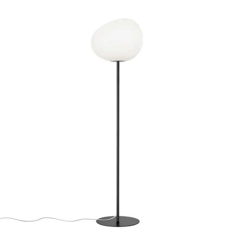 Die Foscarini Stehleuchte Gregg besticht durch ihre organische Form, die an einen vom Wasser glatt geschliffenen Stein erinnert. Dieses unkonventionelle Design macht sie zu einem charmanten Blickfang in jedem Raum. Der Diffusor aus satiniertem, mundgeblasenem Glas verteilt das Licht gleichmäßig in alle Richtungen und sorgt so für eine weiche, angenehme Beleuchtung.