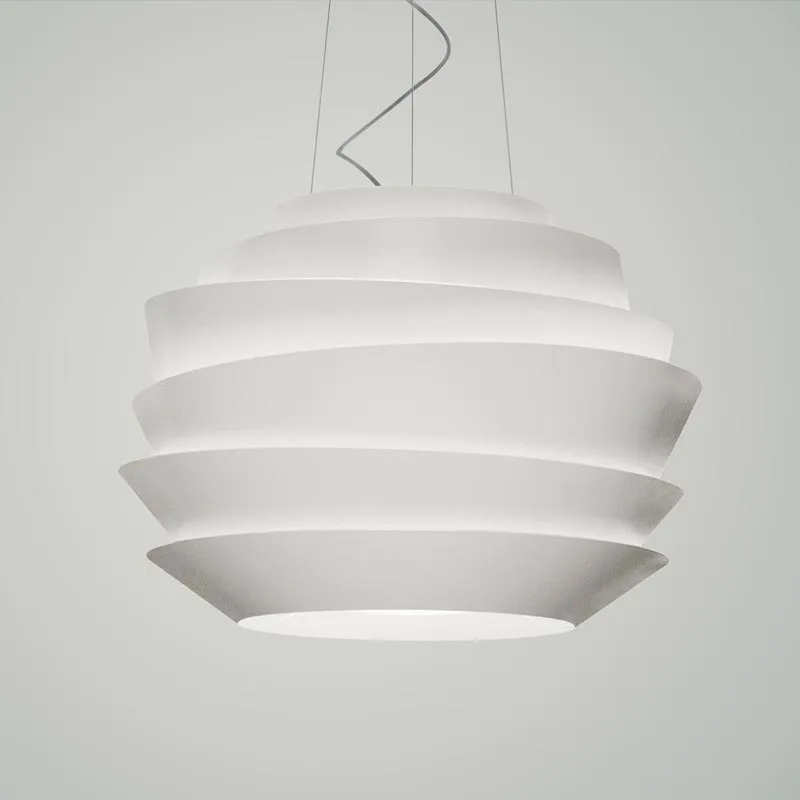Die Pendelleuchte Foscarini Le Soleil ist ein Designklassiker, der über dem Esstisch oder neben der Couch in Ihrem Wohnzimmer schwebt. Mit ihrem Design, das an die revolutionäre Architektur des Guggenheim Museums erinnert, verbindet Le Soleil Kunst mit Funktionalität. Die unregelmäßigen Bänder der leuchtenden Kugel spielen mit Licht und Schatten, reflektieren das Licht im Inneren und streuen es nach außen, was einen bezaubernden Schimmer erzeugt, der den Raum auf sanfte Weise erfüllt. Durch die innovative Verwendung von lichtundurchlässigem Material entsteht ein besonderer Effekt: Einige Lichtbündel werden nach oben ausgeströmt, während direktes Licht nach unten projiziert wird, damit ein bestimmter Bereich im Raum gezielt ins rechte Licht gerückt wird.