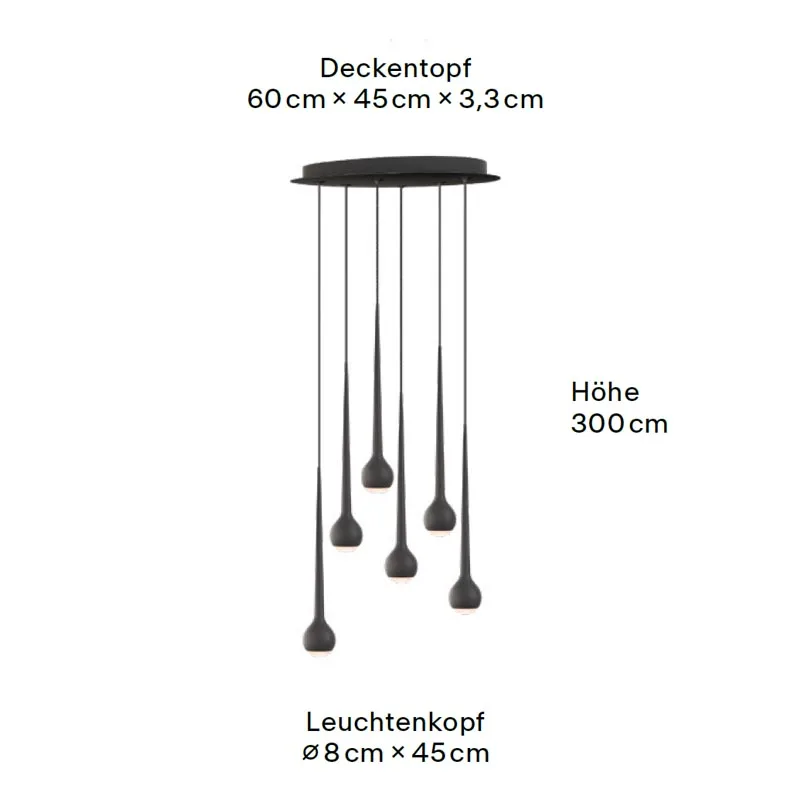 Die 6-flammige Pendelleuchte Falling Sun Water des deutschen Herstellers GRAU bringt die einzigartige Atmosphäre des Sonnenlichts in Ihre Wohnräume. Sie ist bekannt für ihr minimalistisches und ikonisches Design, welches den Geist des Minimalismus widerspiegelt, der seit 15 Jahren das Design der Falling-Serie prägt. Ihre natürliche Ausstrahlung und Wärme haben dazu beigetragen, sie zu einem charakteristischen Leuchtelement in Form eines Tropfens zu machen. Falling Sun Water ermöglicht vielfältige Anwendungen und fungiert in jedem Raum als ansprechender, aber dezenter Blickfang. Die Anbringung der sechs Pendel in unterschiedlichen Höhen am runden Baldachin erzeugt einen ansprechenden Effekt, der an Regen erinnert.