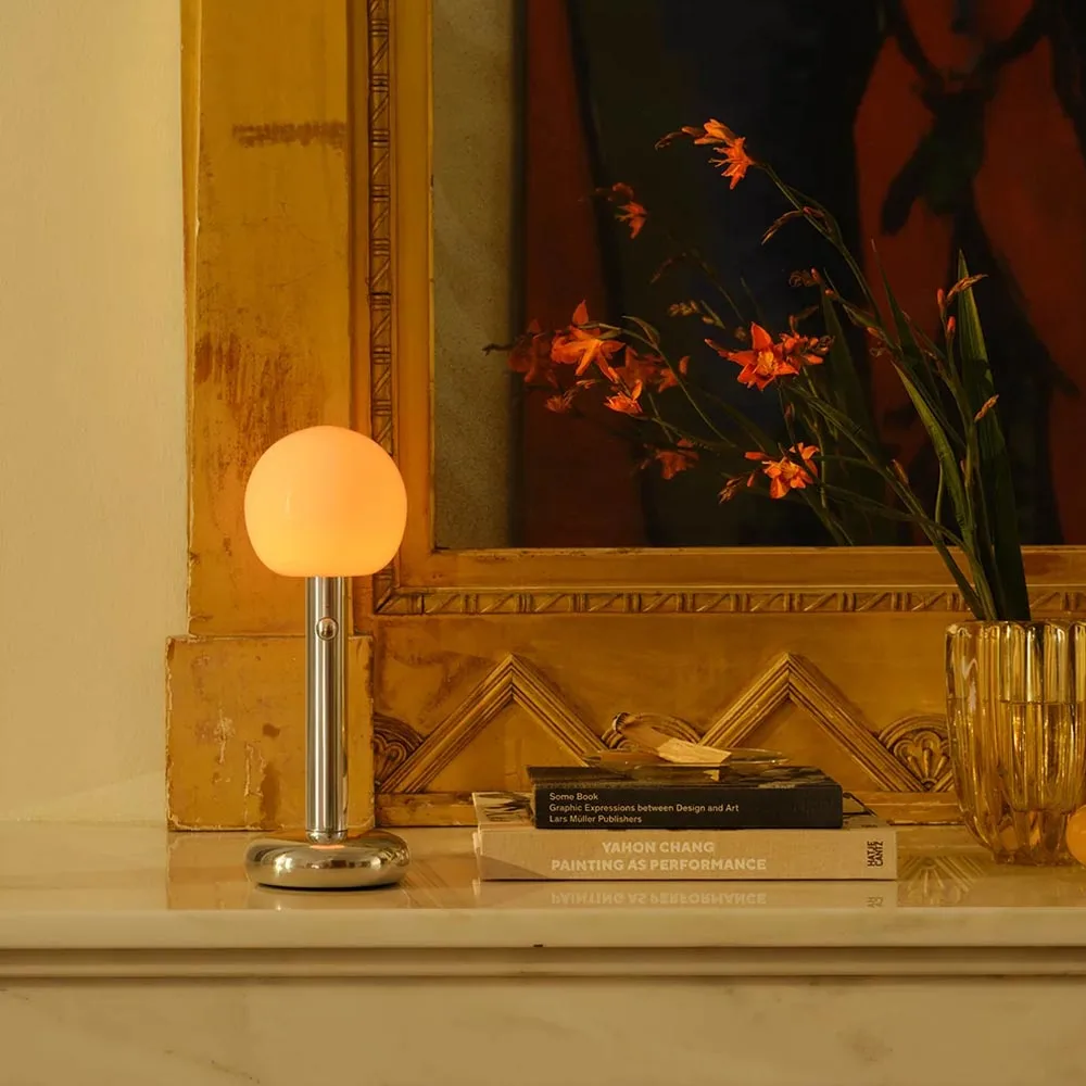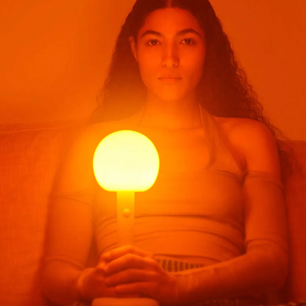 Fire ist eine innovative, tragbare, batteriebetriebene Tischleuchte, die mit zwei komponierten Lichtstimmungen die Poesie einer Kerze in den Raum bringt. Genießen Sie romantische Momente in einem Licht, das Schönheit und Ruhe vereint. Mit nur einem Druck auf den Magic Button wechseln Sie mühelos zwischen den Vibes. Halten Sie die Taste gedrückt, um die bewegte Lichtkomposition zu stoppen und die Intensität nach Wunsch einzustellen.