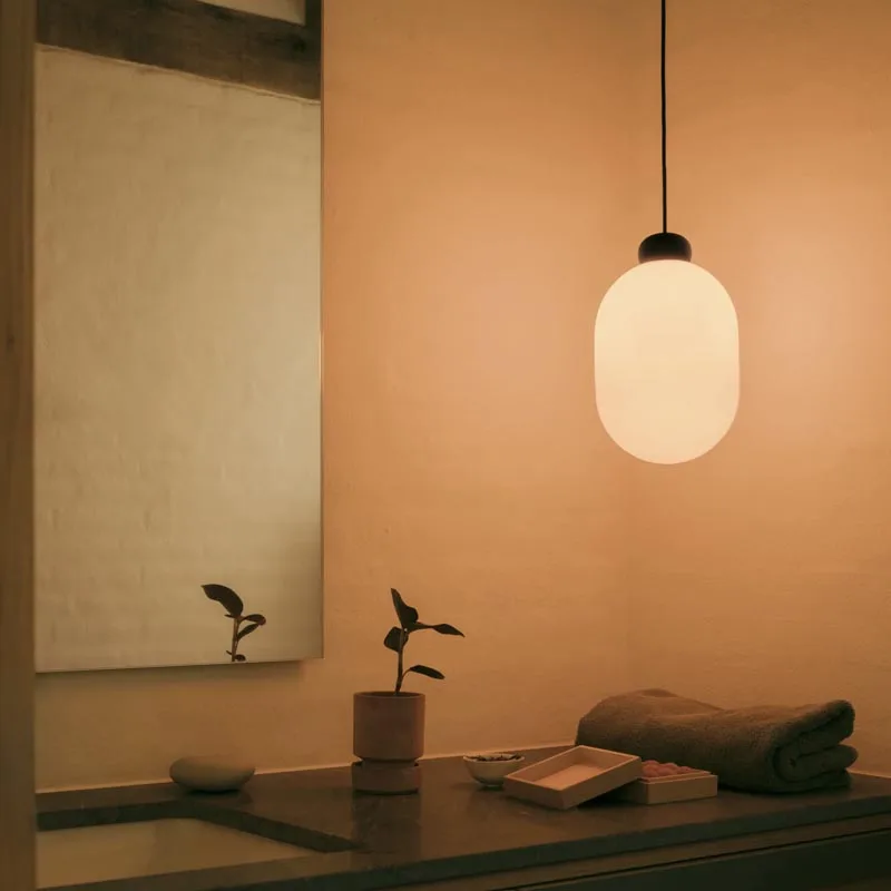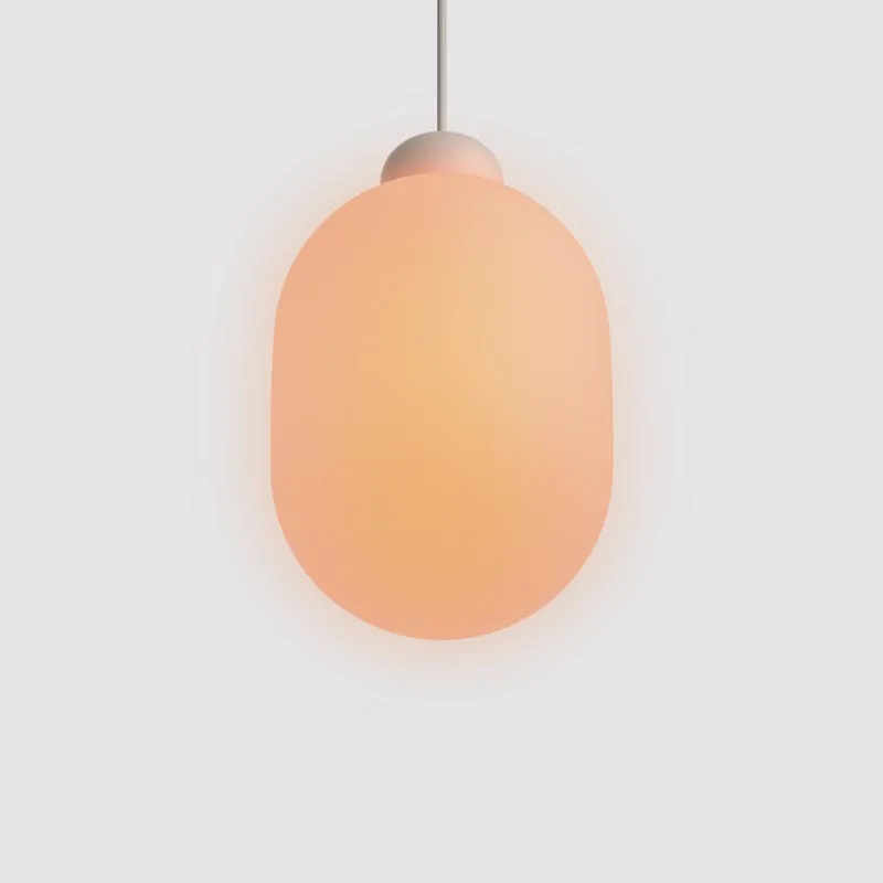 Sun hat eine ruhige und sinnliche Form aus mundgeblasenem Glas und schafft ein angenehmes Ambiente, sei es am Esstisch, im Wohnzimmer oder am Bett. Das Glas ist durch eine elaborierte Schichtung und spezielle Finishes verarbeitet, wodurch ein außergewöhnlich weiches Leuchten erzeugt wird, das den ganzen Raum erfüllt. Ihr magischer Glow entsteht durch das Zusammenspiel von Material, Form und Licht.