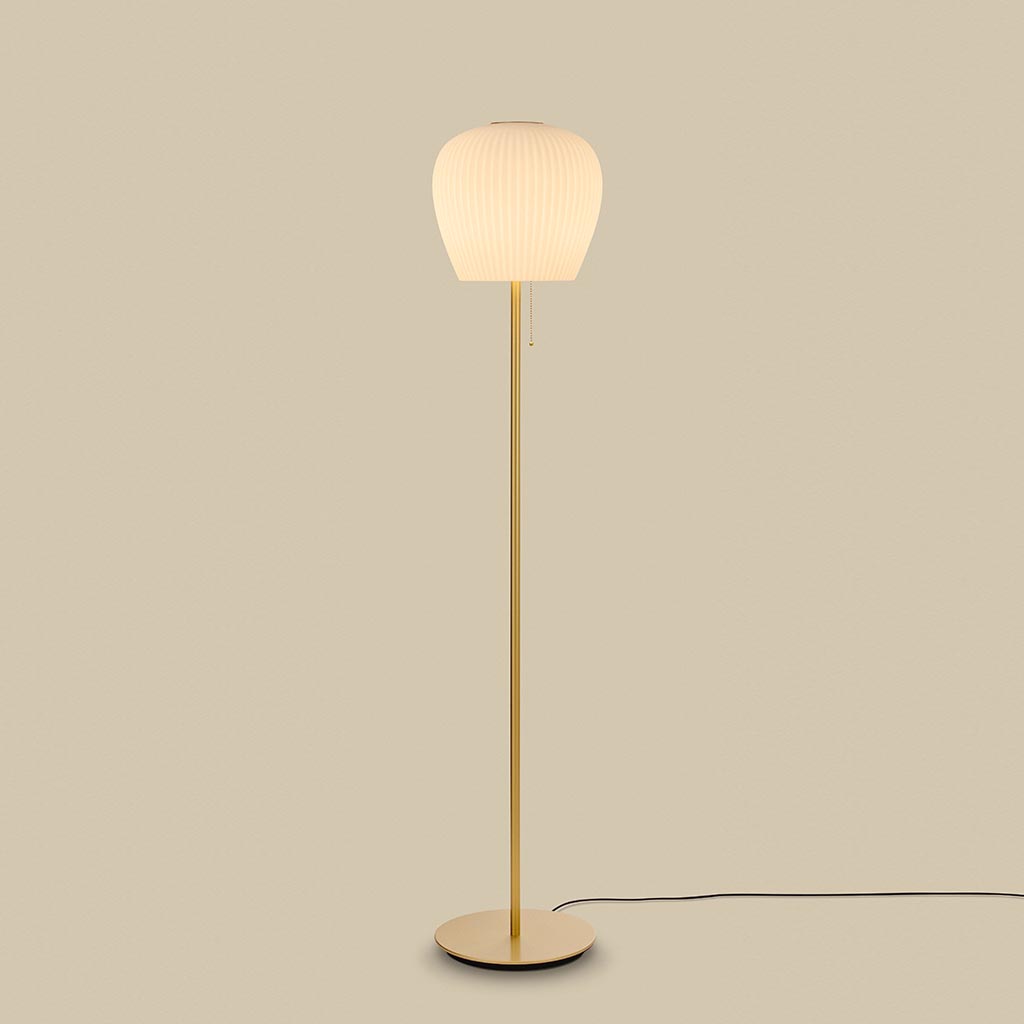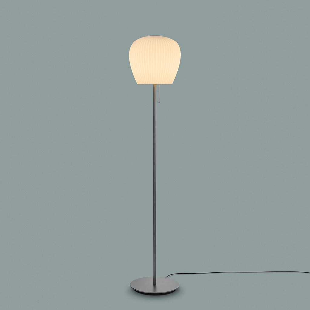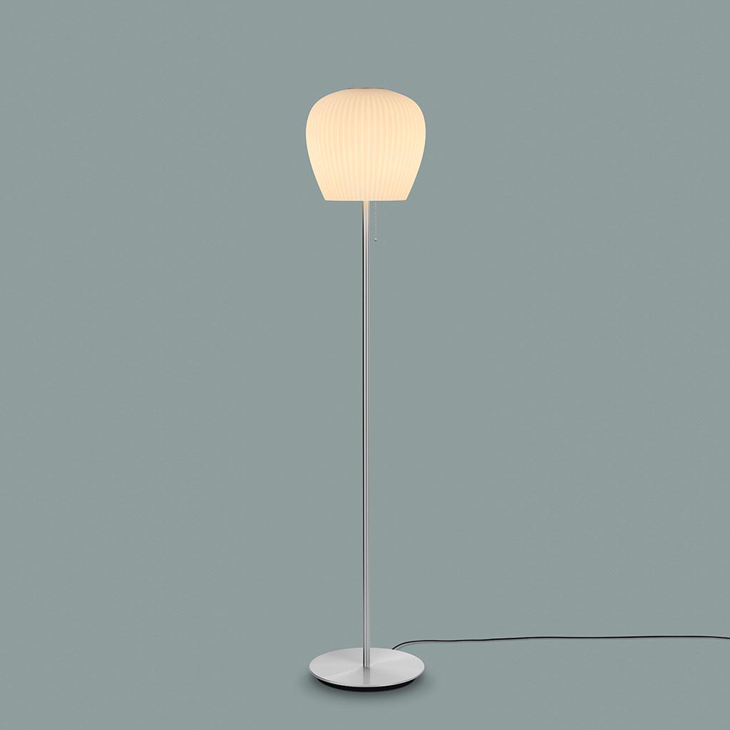 Die LIV S Stehleuchte von Holtkötter bringt sanfte Eleganz und behagliches Licht in Ihr Zuhause. Der fein gearbeitete Lampenschirm aus mundgeblasenem Opalglas begeistert mit seiner sanft gerundeten, leicht bauchigen Form – inspiriert von einer klassischen Vase. Die feinen vertikalen Linien auf dem Glas verleihen der Leuchte eine dezente, stilvolle Struktur und sorgen für eine besonders angenehme Lichtverteilung im Raum.