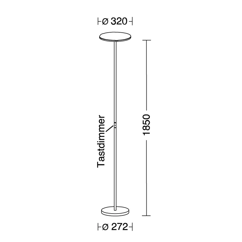 Über zwei Tastdimmer am Leuchtenstab lässt sich die Helligkeit von Deckenfluter und Akzentlicht stufenlos regeln. Nova ist in vier erlesenen Oberflächen erhältlich und fügt sich perfekt in moderne oder klassische Interieurs ein.