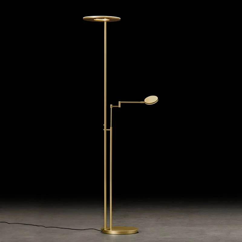 Eleganter und leistungsstarker LED-Deckenfluter mit verstellbarem Lesearm für direktes und indirektes Licht. Mit Tastdimmer. Brillante Farbwiedergabe. Erhältlich bei LAMPADA in fünf eleganten Oberflächen.