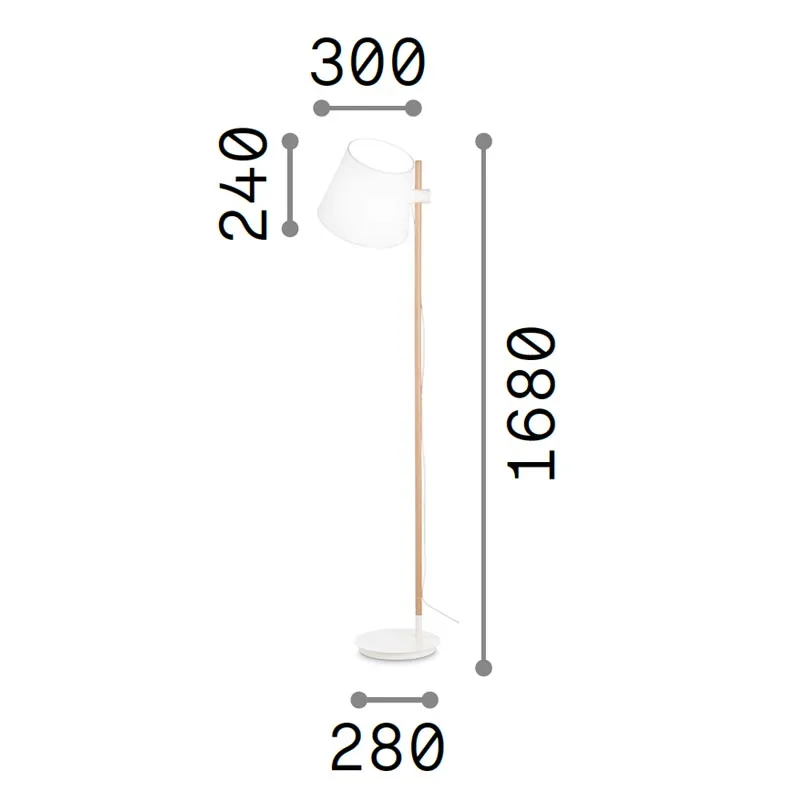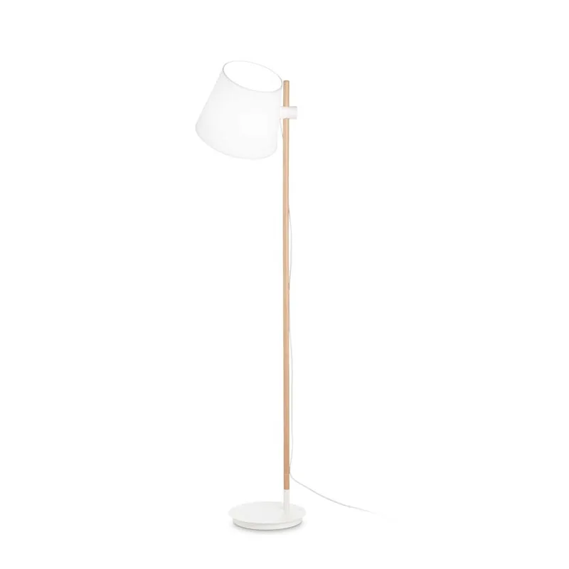 Die Stehleuchte Axel von Ideal Lux vereint Funktionalität mit ansprechendem Design und bietet eine ideale Beleuchtungslösung für das Wohnzimmer, insbesondere als Leseleuchte. Ihr runder Fuß aus pulverbeschichtetem Metall gewährleistet Stabilität, während die Stange aus naturfarbenem Holz eine warme, einladende Atmosphäre schafft. Der textilbezogene Schirm, lässt sich mittels eines Befestigungsbeschlages flexibel in der Höhe einstellen.