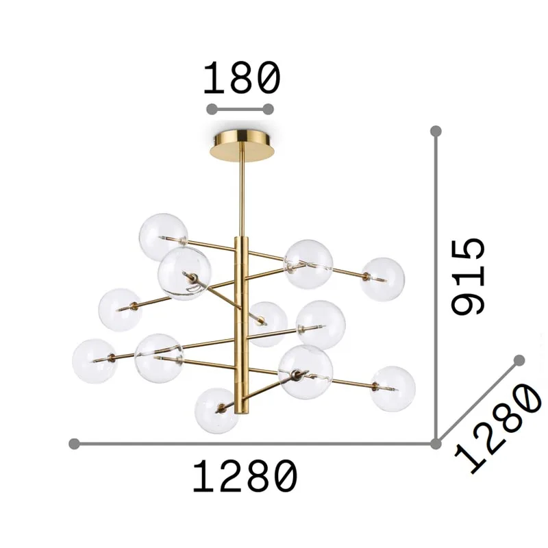 Die 12-flammige Pendelleuchte Equinoxe SP12 präsentiert sich als ein Meisterwerk des Designs, das traditionelle und moderne Wohnkonzepte mit einer eleganten Note bereichert. Ihr raffiniertes Metallgestell, wahlweise in einem leuchtenden Chrom oder in einem warmen Messingfinish, verleiht der Leuchte eine exklusive und luxuriöse Ausstrahlung.