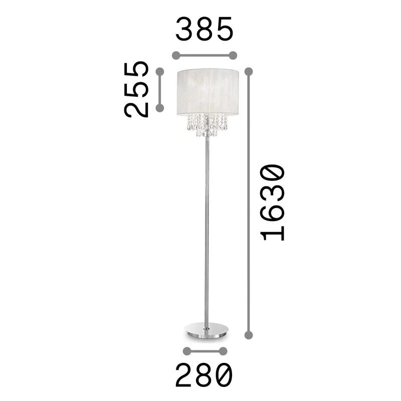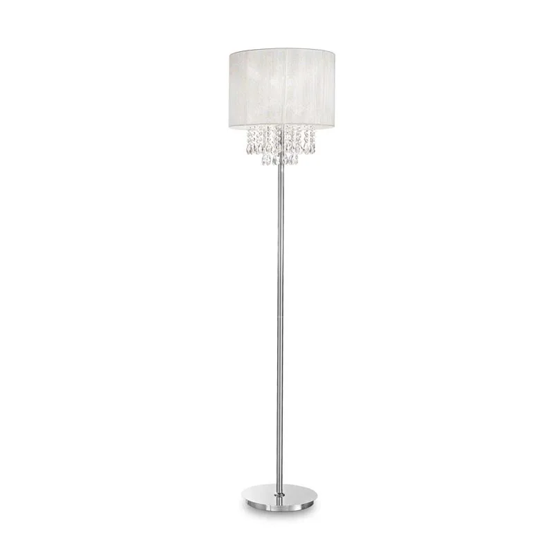 Klassisch, prunkvoll und äußerst dekorativ präsentiert sich die Stehleuchte Opera von der italienischen Lichtmarke Ideal Lux. Mit ihrer exquisiten Verbindung aus Eleganz und Funktionalität eignet sie sich für diverse Wohnräume. Ihr stilvolles Design fügt sich nahtlos in moderne wie klassische Interieurs ein. Das chromfarbene Gestell bietet eine schlanke und zeitgemäße Basis, während der kunstvoll mit Fäden überzogene Lampenschirm einen dekorativen Akzent setzt. Ein besonderes Highlight sind die handgeschliffenen Kristallanhänger, die um den Schirm drapiert sind. Sie reflektieren das Licht auf spektakuläre Weise und erzeugen funkelnde Lichteffekte, die jeden Raum verzaubern.