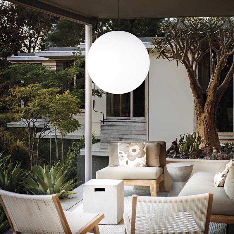 Die Pendelleuchte Sole D50 von Ideal Lux verwandelt Ihren Außenbereich in eine Insel des Lichts. Schwebend über Terrassen oder Balkonen gleicht sie der Abendsonne, die sanftes Licht spendet und für eine beruhigende Atmosphäre sorgt. Die aus opalem Kunststoff gefertigte Kugel sorgt für eine gleichmäßige und weiche Beleuchtung, die Ihre Abende im Freien verschönert und jede soziale Zusammenkunft mit einem warmen Glanz untermalt.